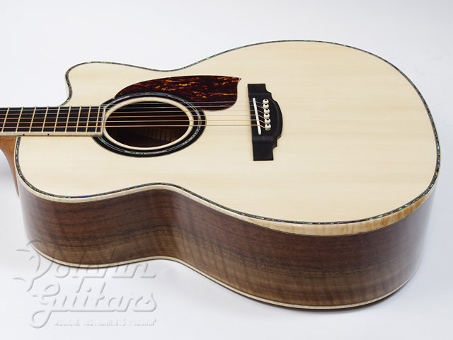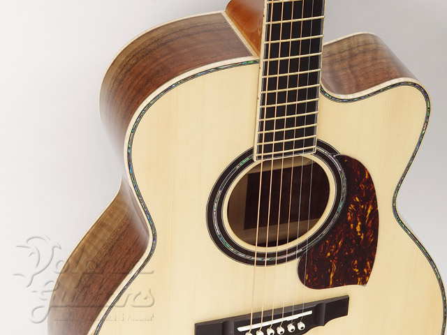 エゾ松トップ、ウォルナット・サイド&バック、ホンジュラス・マホガニー・ネック、エボニー指板&駒、エルボーコンター、イーグル・インレイ。