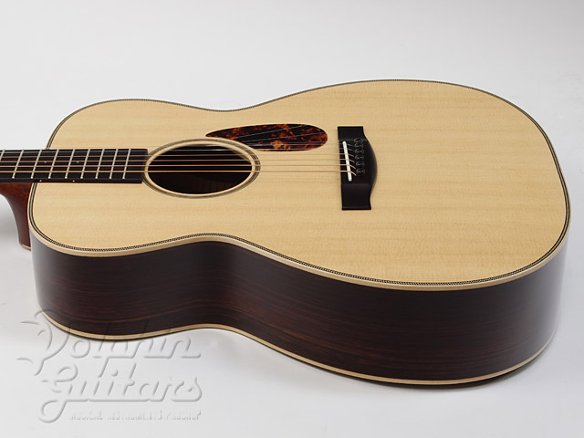 シトカ・スプルーストップ、インディアン・ローズウッドサイド&バック、マホガニーネック、エボニー指板&駒、メイプル・バインディング、オリジナル鼈甲柄ピックガード。