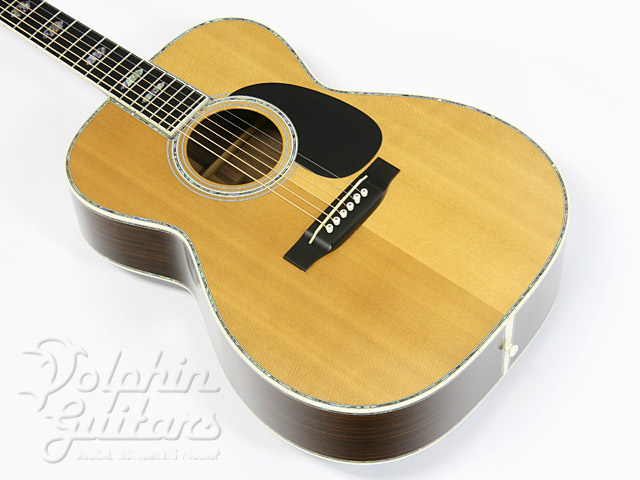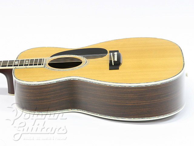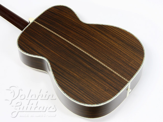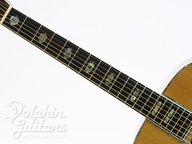 シトカスプルース・トップ、インディアン・ローズウッド・サイド&バック、ヘキサゴン・アバロンインレイ、エボニー指板&駒、ヘッド・インレイは今は使用されていない縦ロゴ。