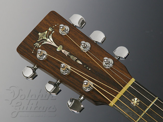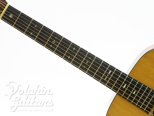 シトカ・スプルース・トップ、マホガニー・サイド&バック、ローズウッド指板&駒、トーチ・インレイ、スノーフレーク&キャッツ・アイズ・インレイ。