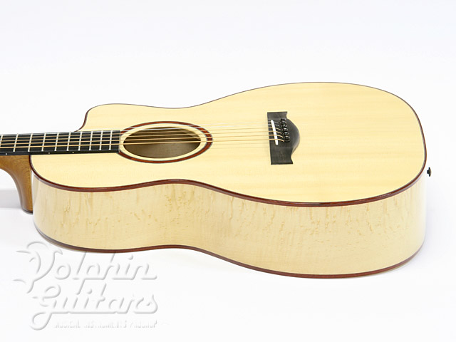 小さなボディサイズからは想像も出来ないほど、良く響き、レスポンスも大変良くメイプルの甘いサウンドと相まって歌モノやフィンガーピッキングに相性が良さそうです。