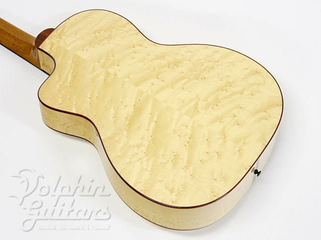 コンパクトなボディに、当店スタッフがドイツ南アルプス買い付けてきた極上のフィギャード・バーズアイ・メイプルを使用したサウンドメッセ出展モデル00C-28(Birds Eye Maple)。