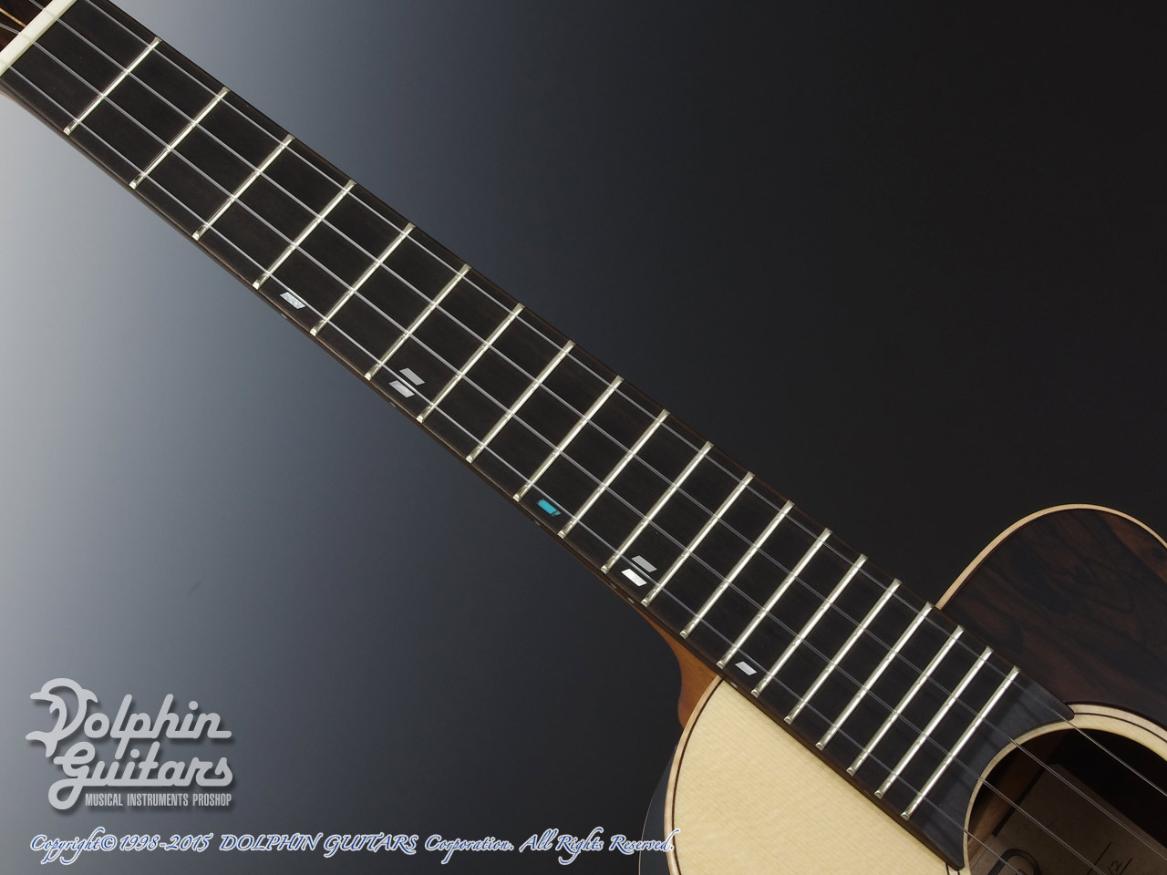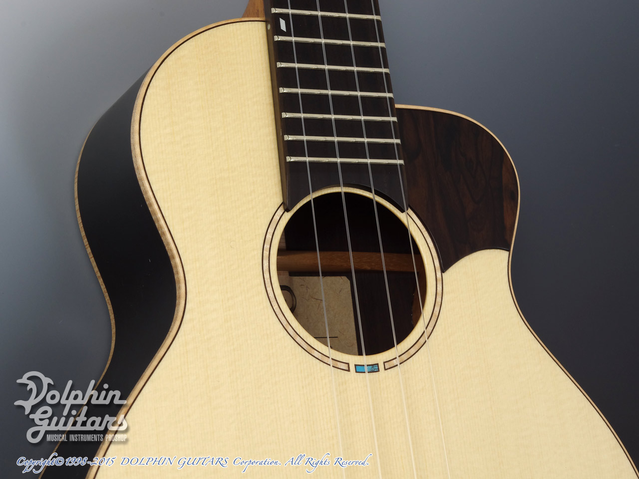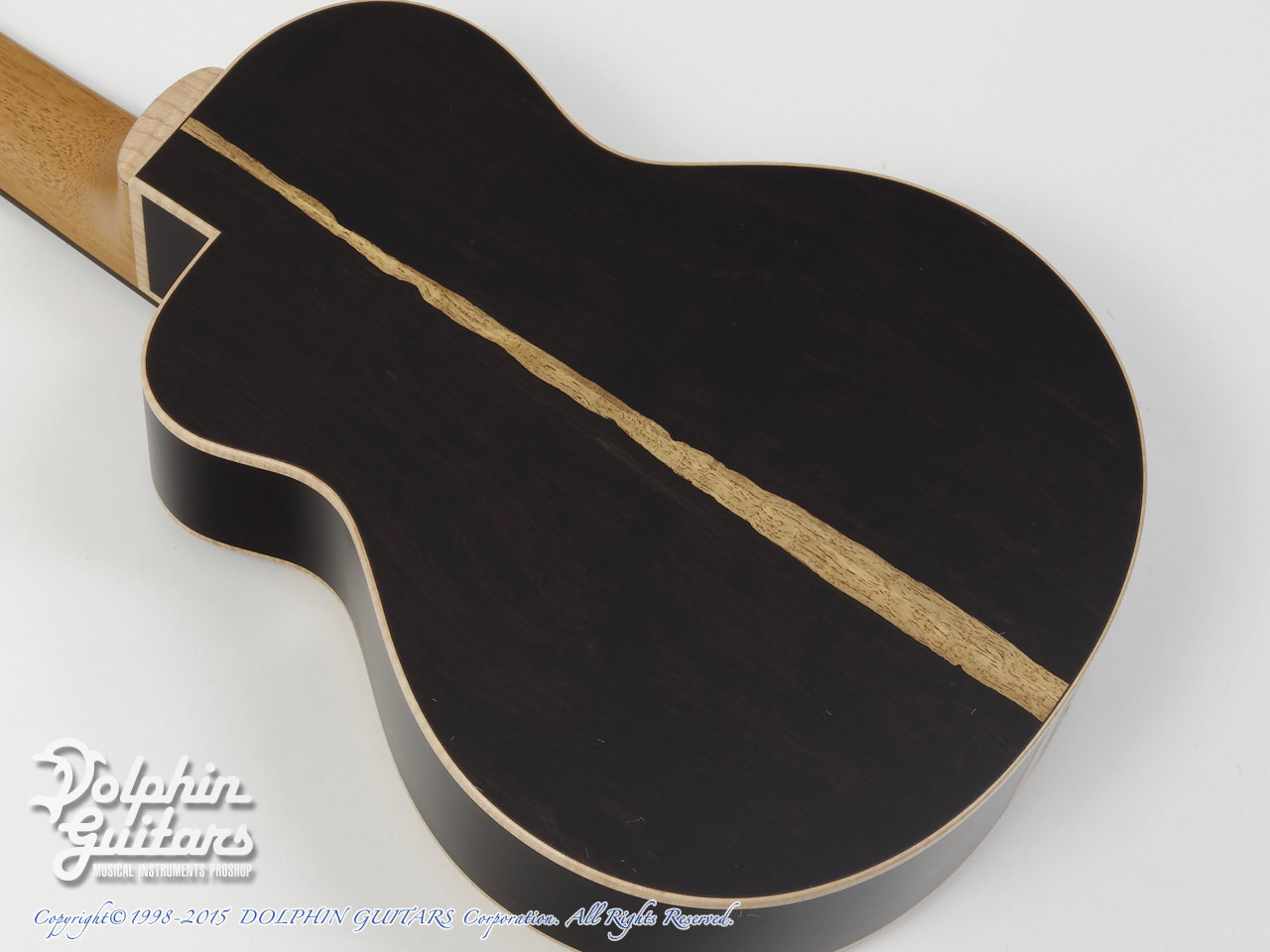 イングルマン・スプルース・トップ、アフリカン・ブラックウッド・サイド&バック、マホガニー1ピース・ネック、エボニー指板&駒、スロッテッド・ヘッド、ジリコーテ・ピックガード、カッタウェイ。