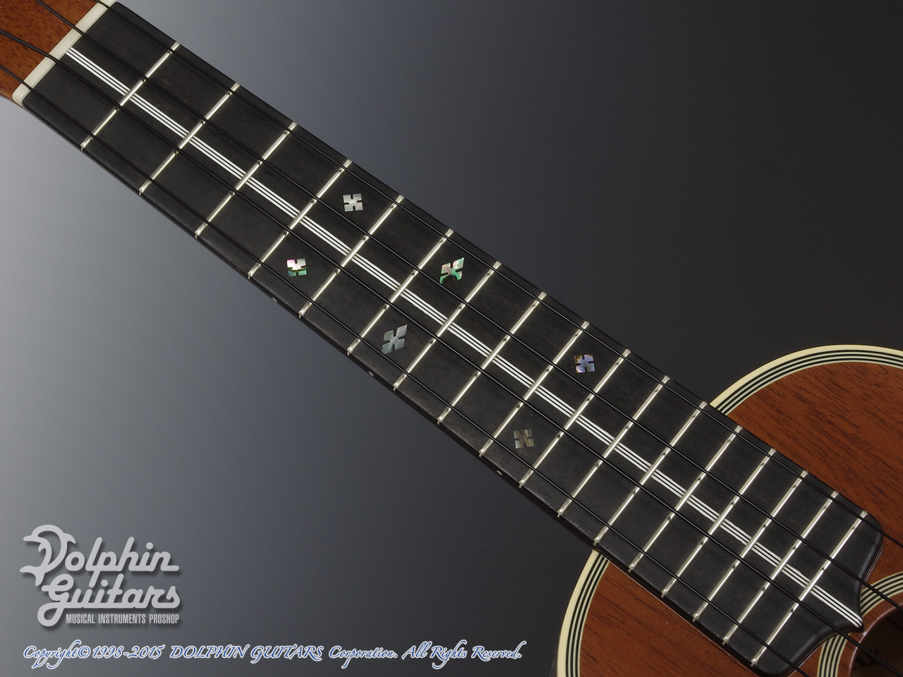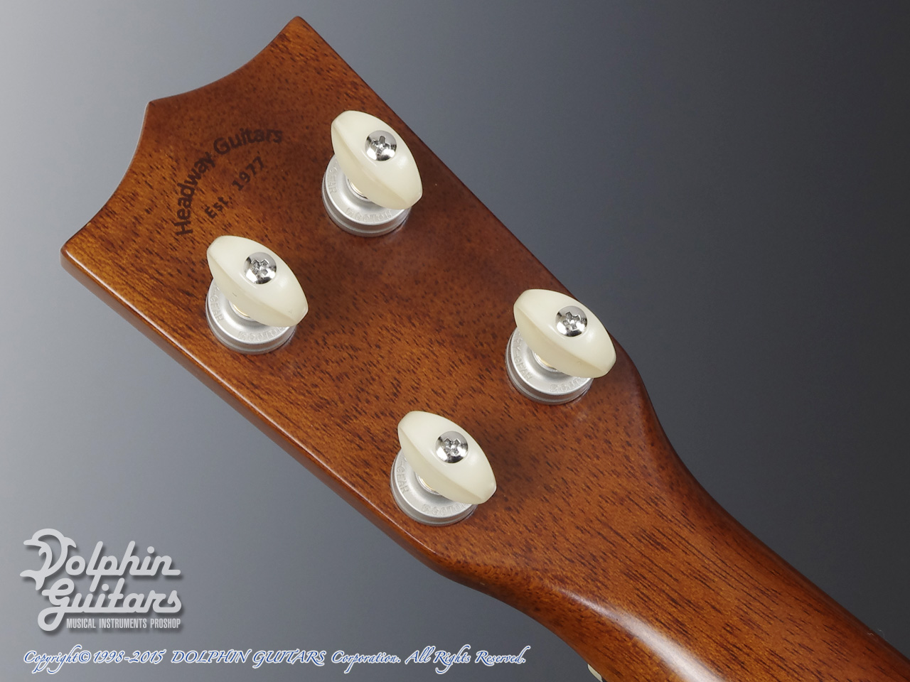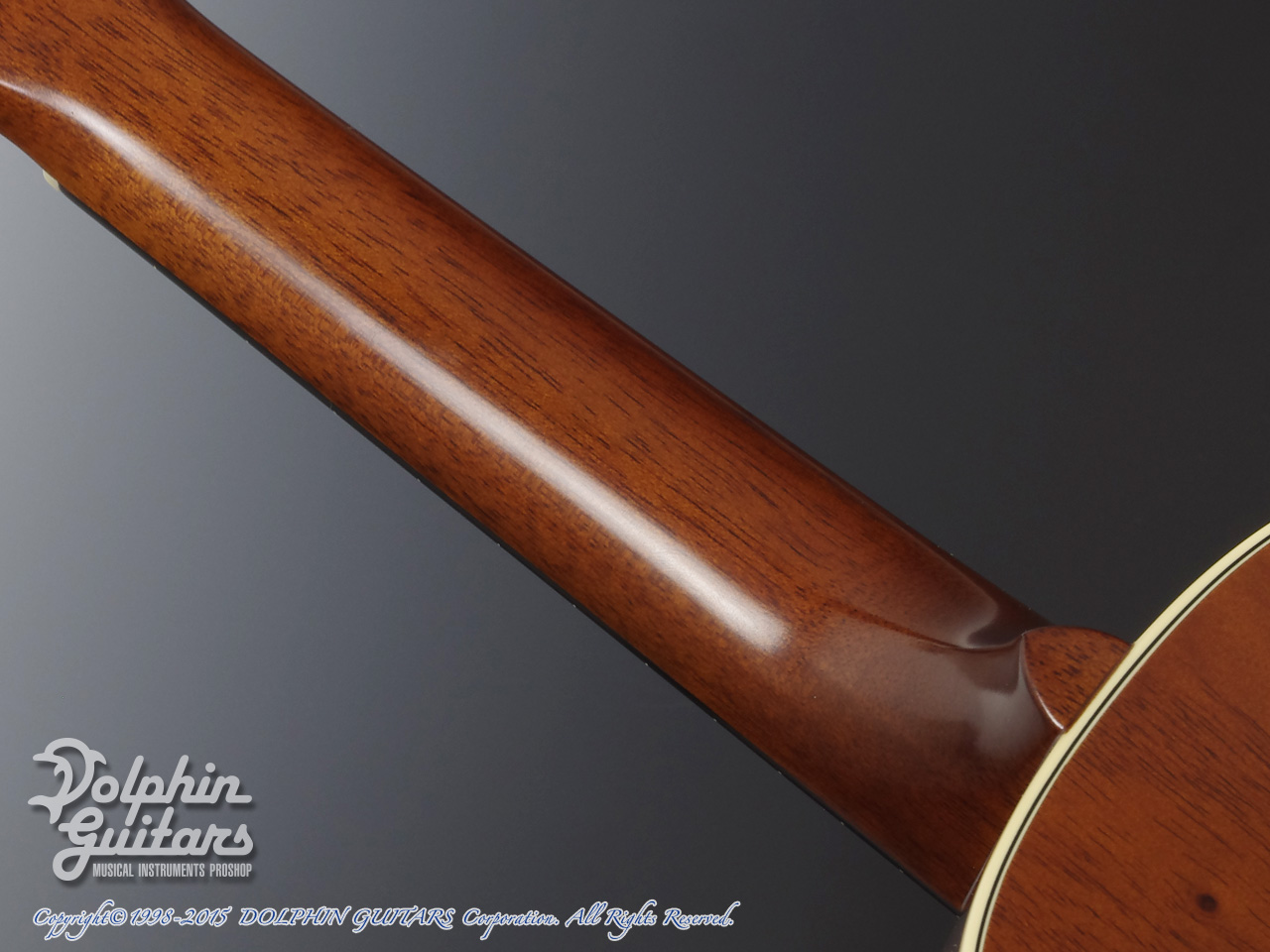 キューバン・マホガニー・ボディ、マホガニー1ピース・ネック、エボニー指板、マホガニー駒、センターライン、ボトム・オーナメント、Gotoh製糸巻きUTP(4:1のギアペグタイプのためチューニング制度も高く、軽量でストレスフリーなチューニングが可能)、30年代の3Mとどうようボトムオーナーメント、センター・ライン、ヴィンテージ・ブラウン・カラー。