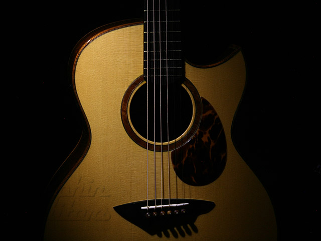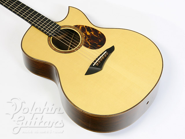 シトカスプルース、プレミアム・フィギャードハカランダ・サイド&バック、エボニー指板&駒、ウェイバリー糸巻き。