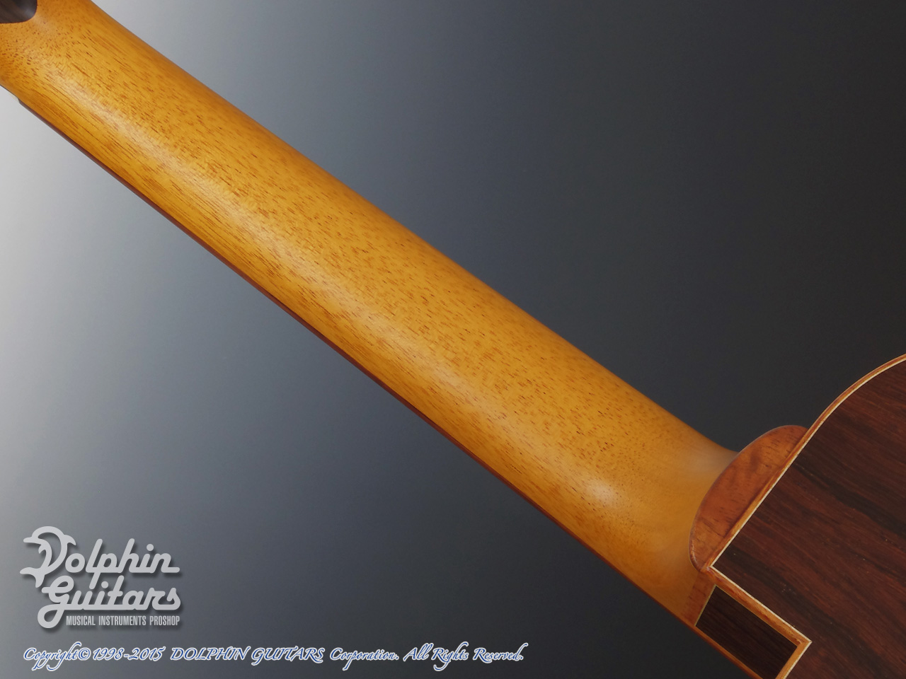 ジャーマン・スプルーストップ、マダガスカル・ローズウッドサイド&バック、マホガニー1ピースネック、エボニー指板&駒、ハワイアンコア・ウッドバインディング、ハワイアンコアロゼッタ、スロッテッドヘッド、ハワイアンコア・ピックガード、カリマンタン・エボニーヘッドプレート、ベネチアン・カッタウェイ、ゴトー製糸巻き仕様。