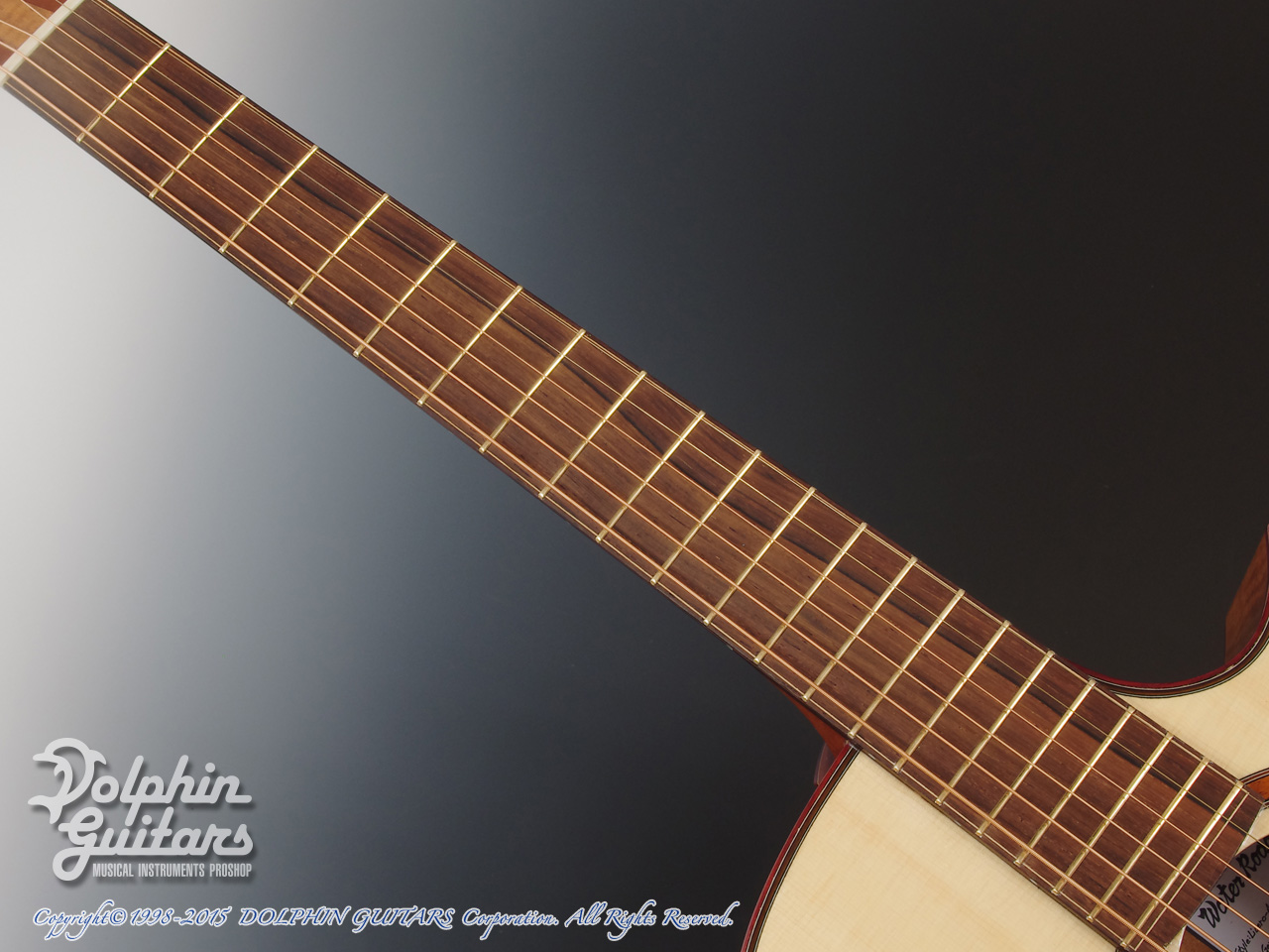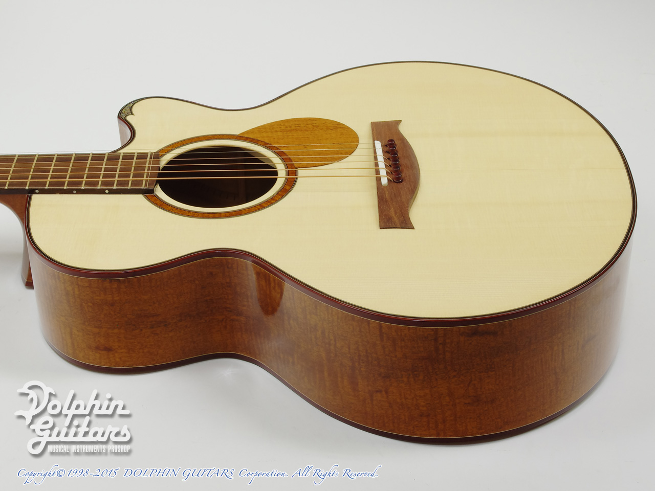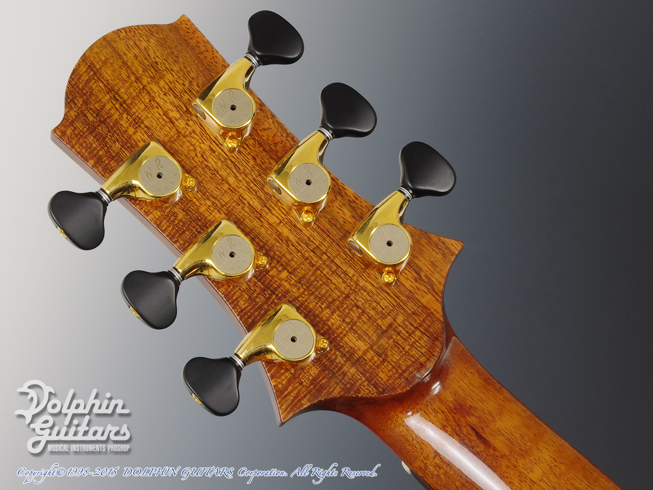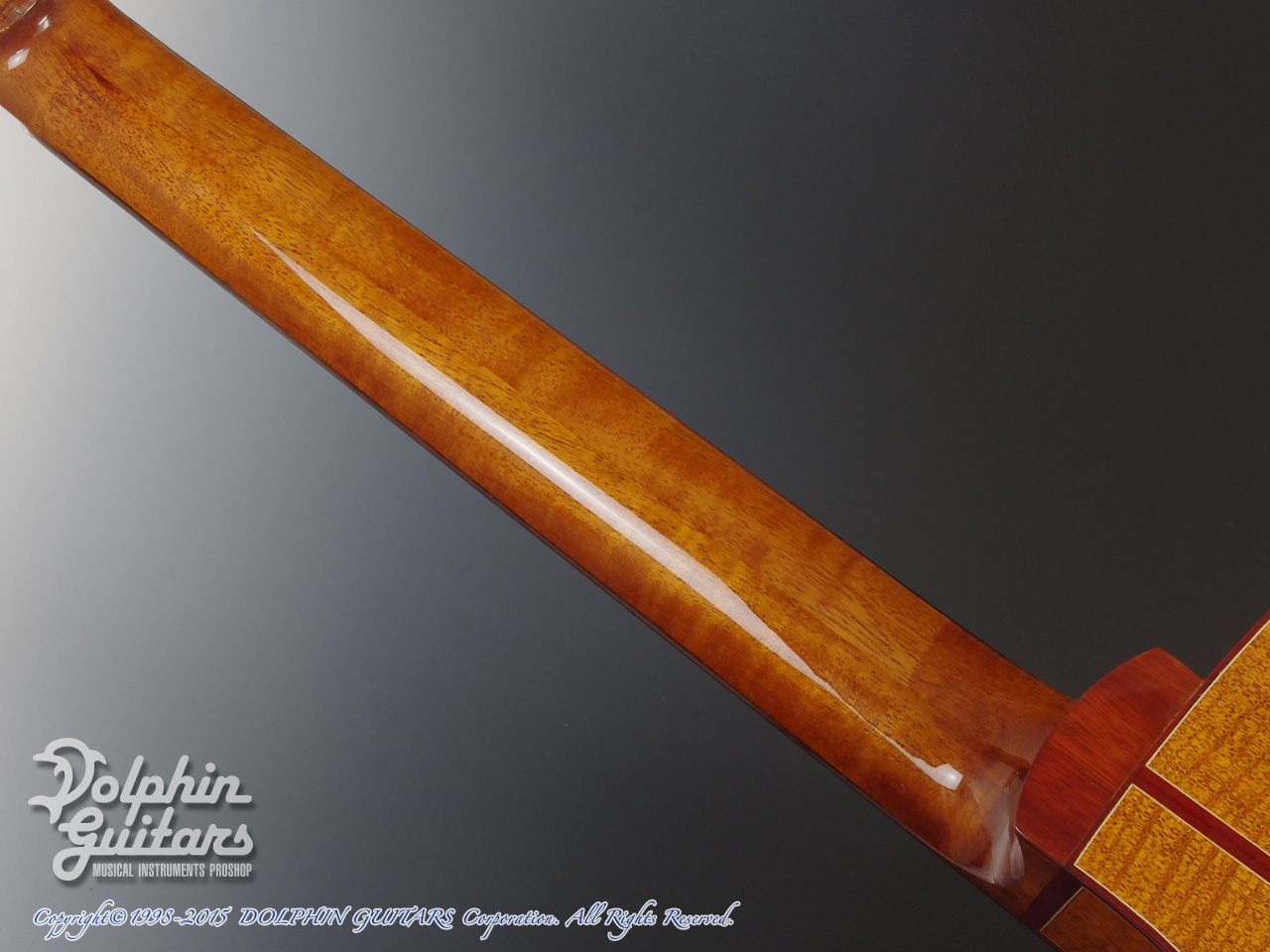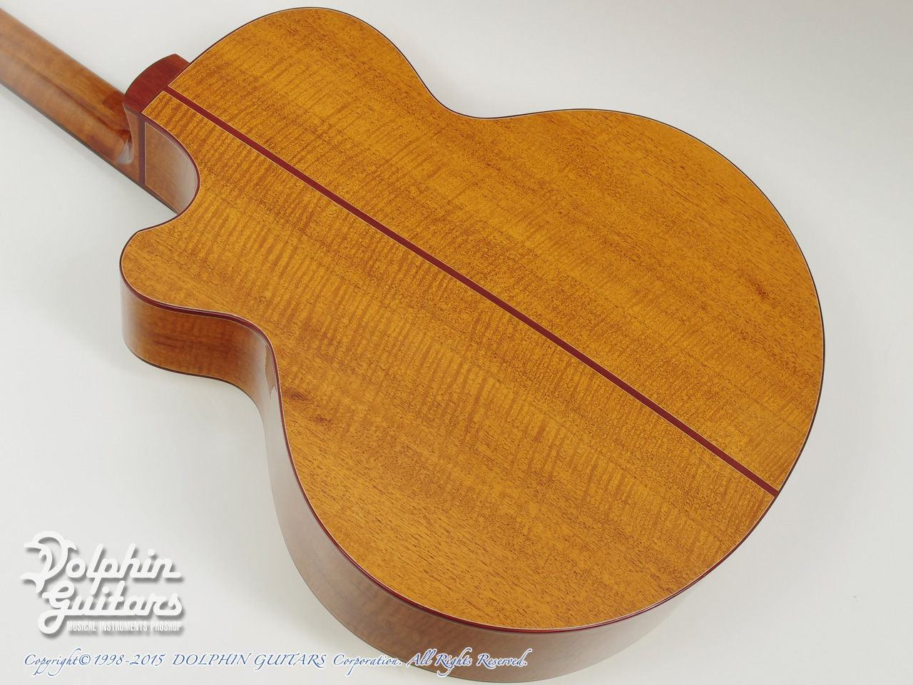 ジャーマンスプルーストップ、カーリーホンデュラス・マホガニーサイド&バック、ベネチアン・カッタウェイ、ホンデュラスマホガニーネック、マダガスカルローズ指板&駒、ブラッドウッドバインディング、ゴトー510糸巻き。