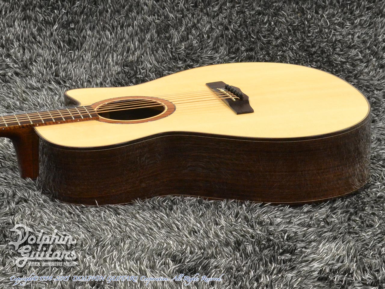 ベネチアン・カッタウェイを採用したコンサート・ボディに投入されたボディは、グランド・オーディトリアムからこの機種のために新たにThin化したもの。