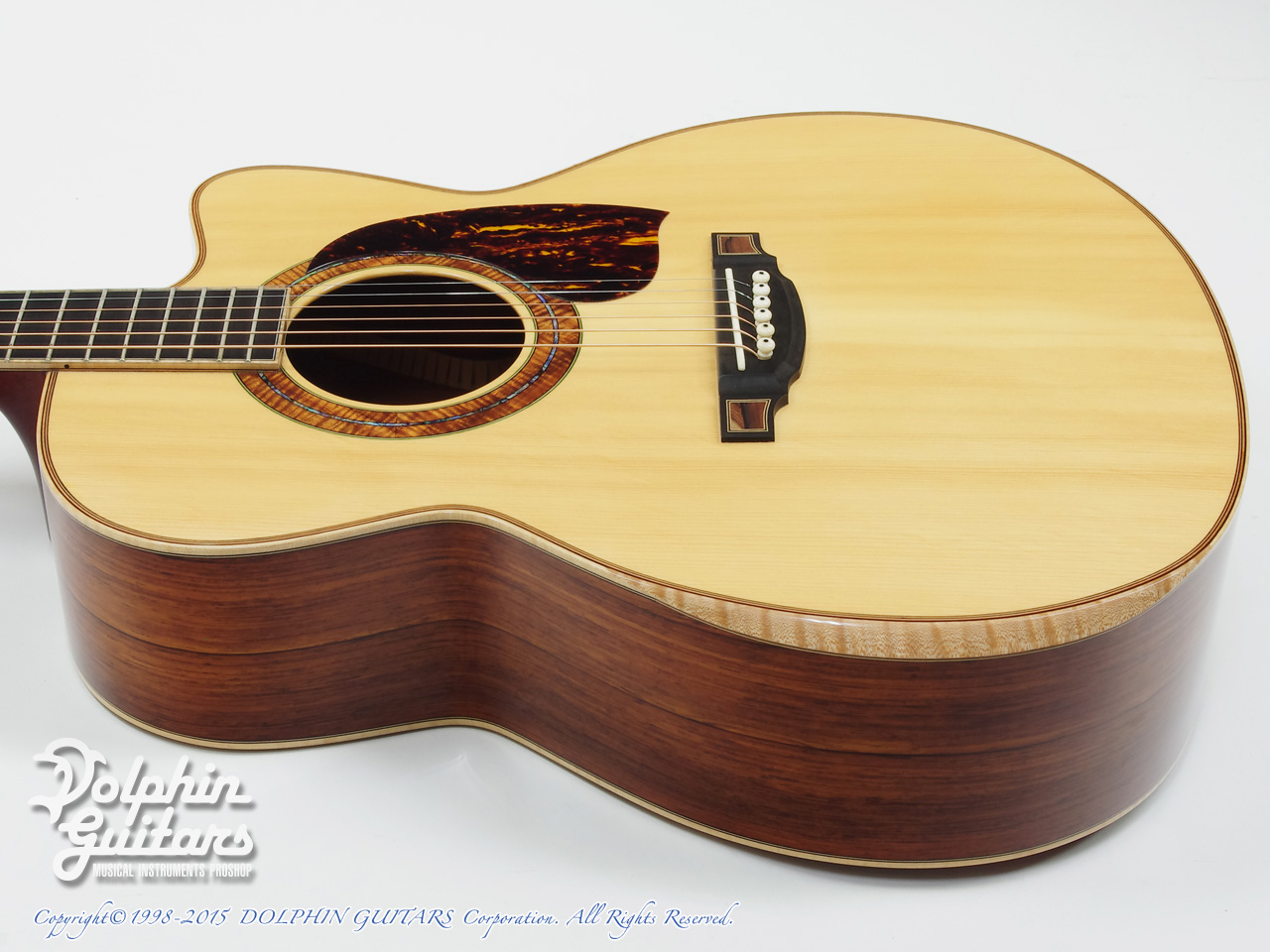 エゾ松トップ、マダガスカル・ローズウッドサイド&バック、スキャロップドXブレイス、マホガニーネック、アジャスタブルロッド、エボニー指板&駒、メイプル・バインディング&アームレスト、コアウッド&アバロンロゼッタ、ゴトー製510糸巻き仕様。