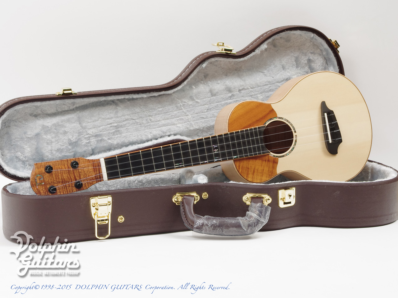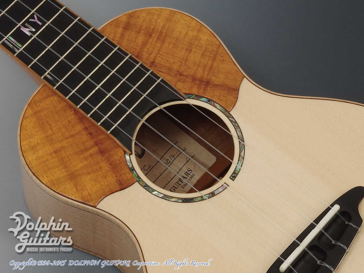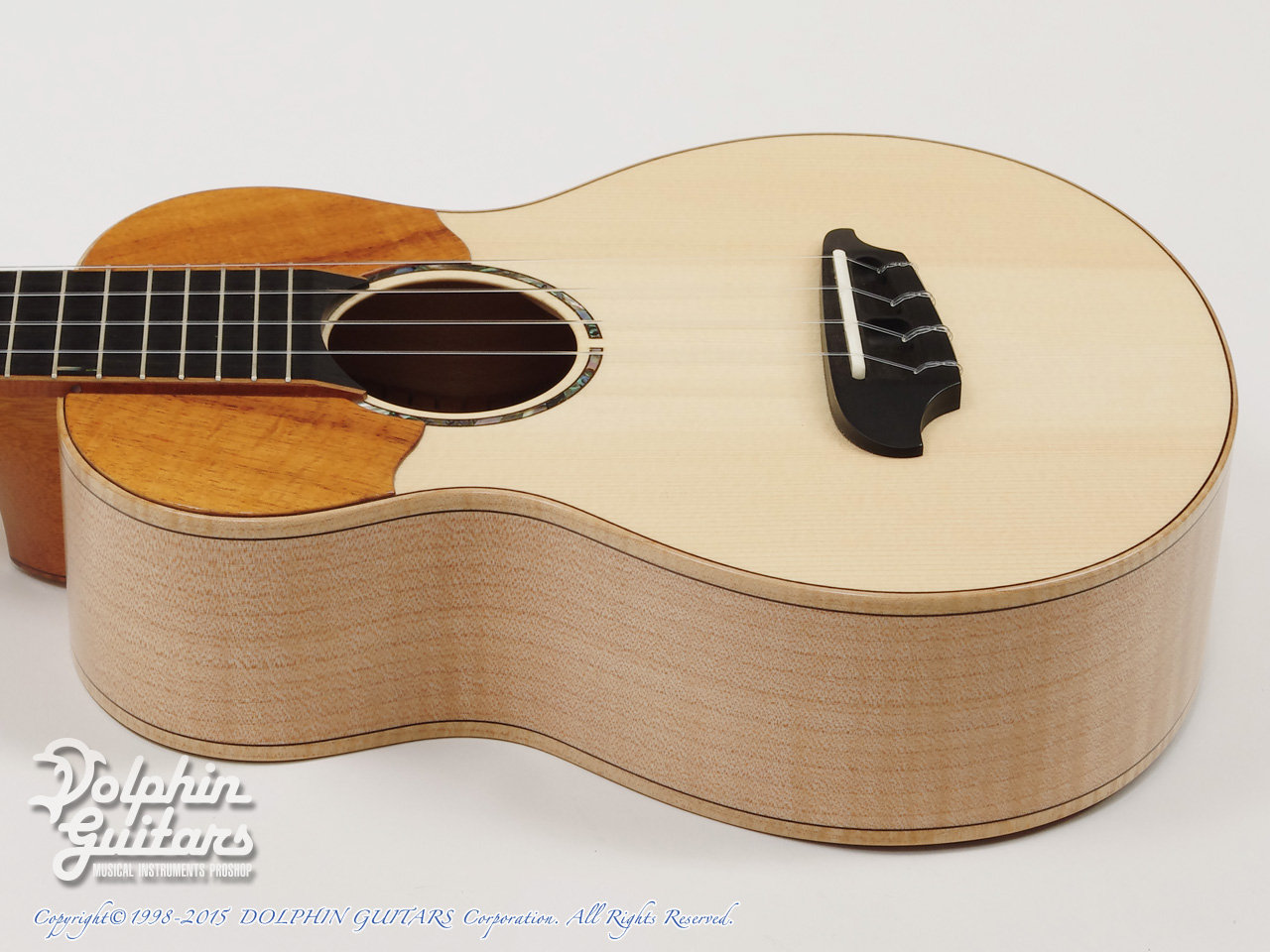 本器はコンサート・サイズ、スプルースとメイプル&コアの斬新なコンビネーションが目を引くModel/VC。