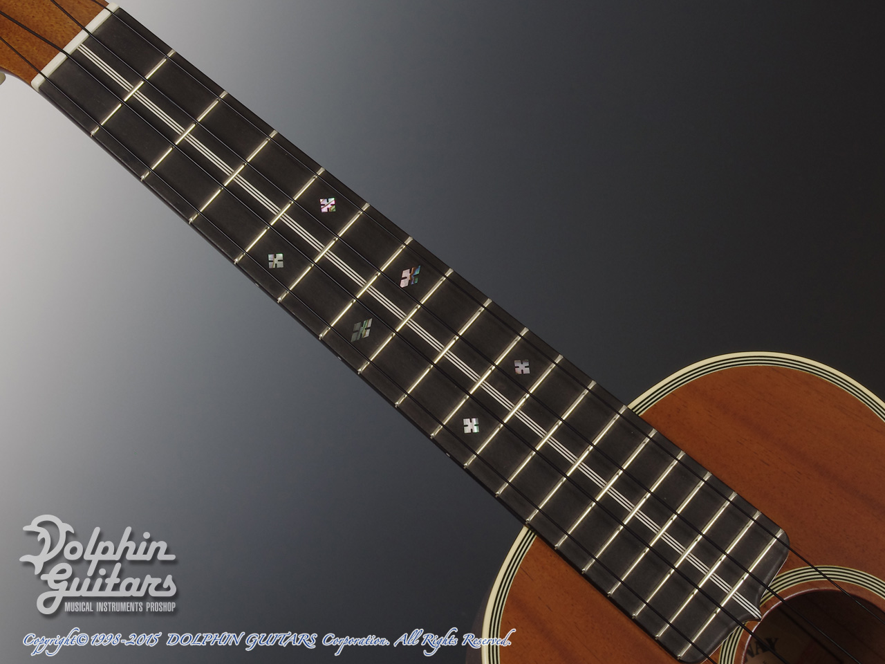 キューバン・マホガニー・ボディ、マホガニー1ピース・ネック、エボニー指板、マホガニー駒、センター・ライン、ボトム・オーナメント、Gotoh製糸巻きUTP(4:1のギアペグタイプのためチューニング精度も高く、軽量でストレスフリーなチューニングが可能)、30年代の3Mと同様ボトムオーナーメント、センター・ライン、ヴィンテージ・ブラウン・カラー。