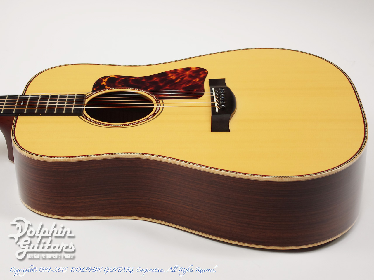 厳選されたイングルマンスプルース・トップ、インディアンローズウッド・サイド&バック、スキャロップドXブレイス、マホガニーネック、アジャスタブルロッド、エボニー指板&ブリッジ、メイプルバインディング、"イーグル"ヘッドインレイ、Gotoh 510糸巻き仕様。