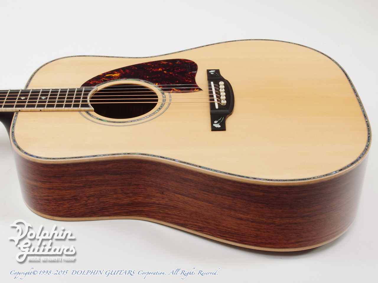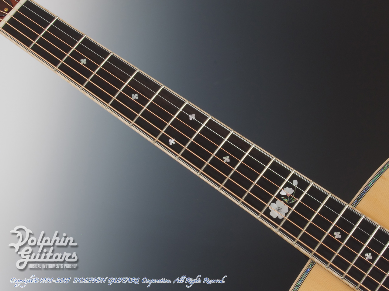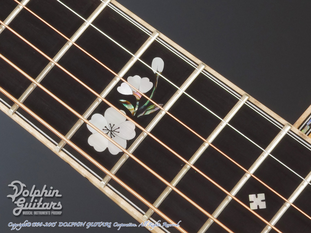赤エゾ松トップ、ホンジュラスローズウッド・サイド&バック、スキャロップドXブレイス、マホガニーネック、アジャスタブルロッド、エボニー指板&駒、メイプル・バインディングべっ甲柄ピックガード、桜インレイ、ゴトー製510糸巻き。