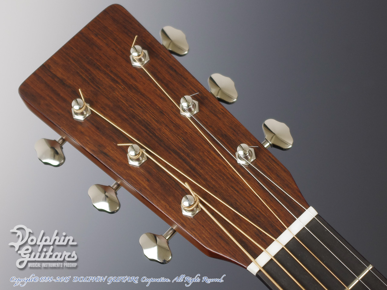 アディロンダック・スプルース・トップ、シンガポール・マホガニー・サイド&バック、ホンジュラス・マホガニー・ネック、エボニー指板&ブリッジ、鼈甲柄ピックガード、ブレイシングはホワード・シフテッド・Xスキャロップド・ブレーシング採用、オールドテイスト溢れるルックス。