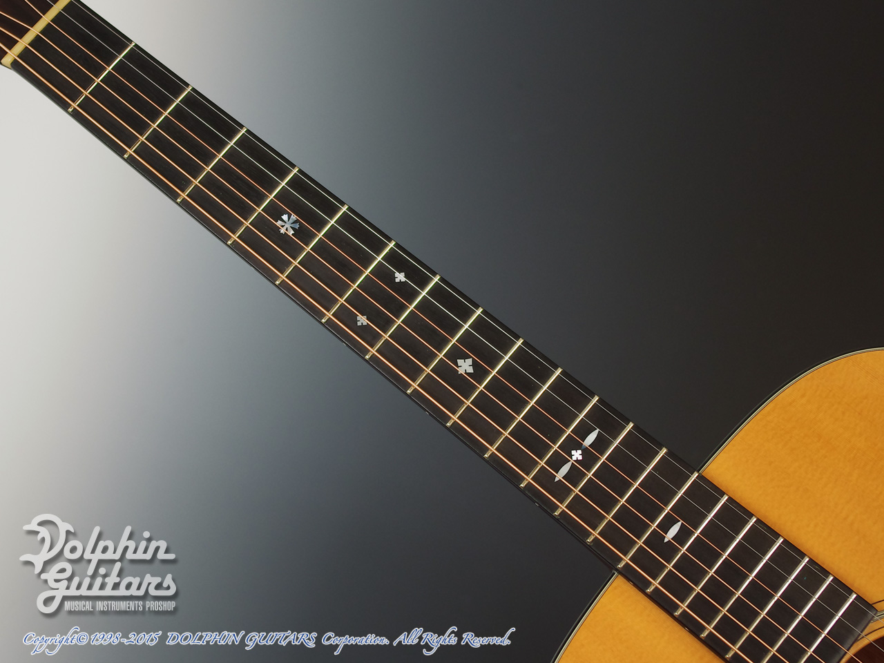 シトカスプルース・トップ、マホガニー・サイド&バック、スキャロップドXブレイス、アフリカン・マホガニー1ピースネック、エボニー指板&ブリッジ、スノウフレイクス指板インレイ、べっ甲柄PG(塗り込み式)、ゴトー製オープンバック糸巻き仕様。