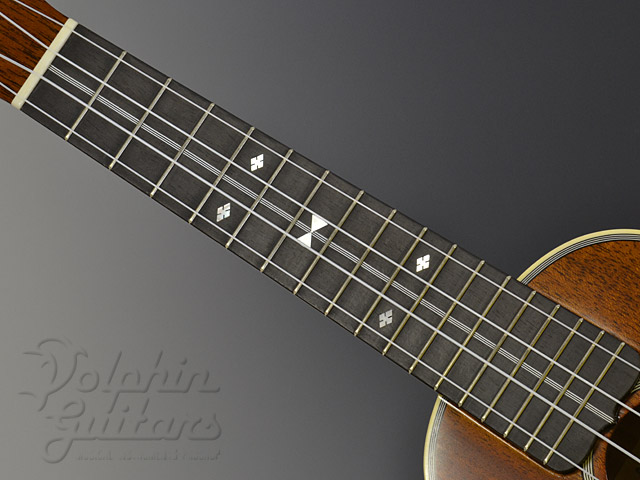 ホンジュラス・マホガニー・ボディ&ネック、エボニー指板、ローズウッド駒、センターライン、ボトム・オーナメント。