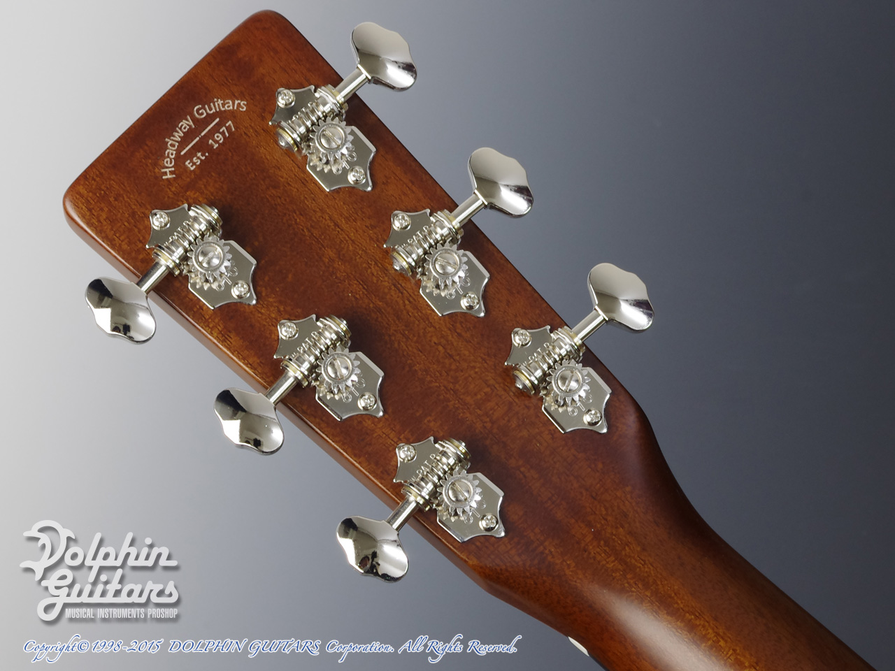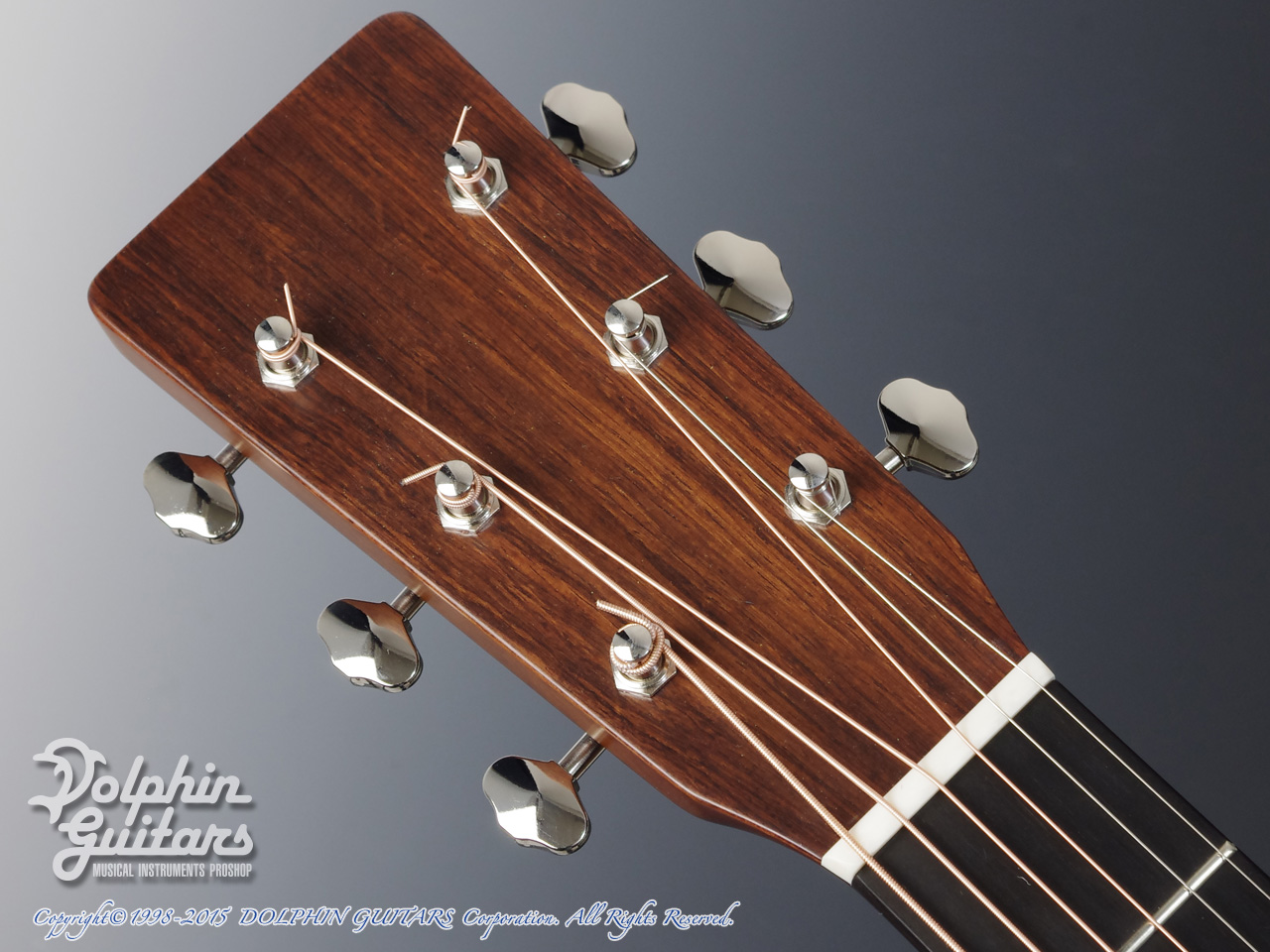 アディロンダック・スプルース・トップ、キューバン・マホガニー・サイド&バック、キューバン・マホガニー1ピース・ネック、エボニー指板&ブリッジ、鼈甲柄ピックガード、リアシフテッド・Xスキャロップド・ブレーシング採用、オープン・バック・ゴトー製糸巻き、オールドテイスト溢れるルックス。
