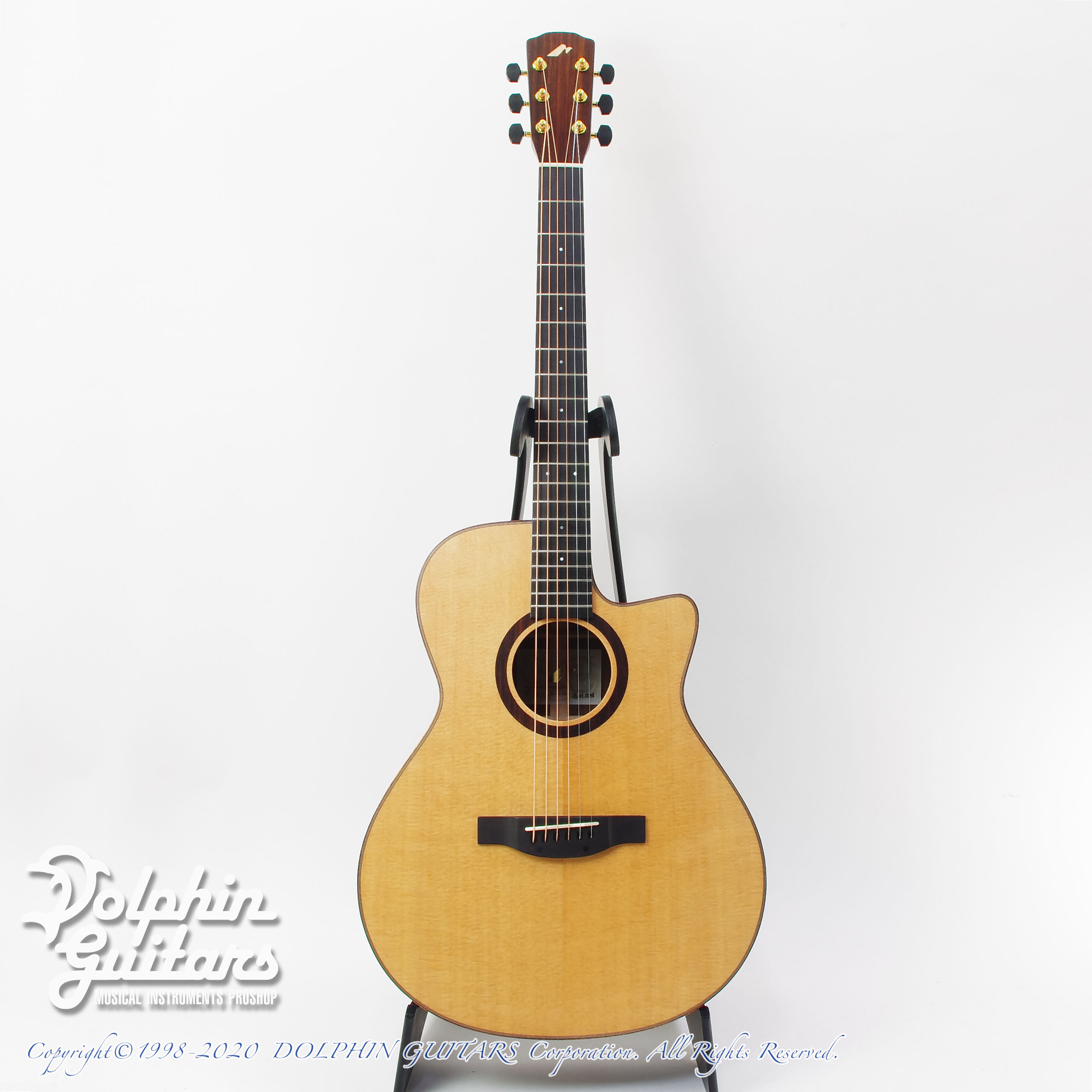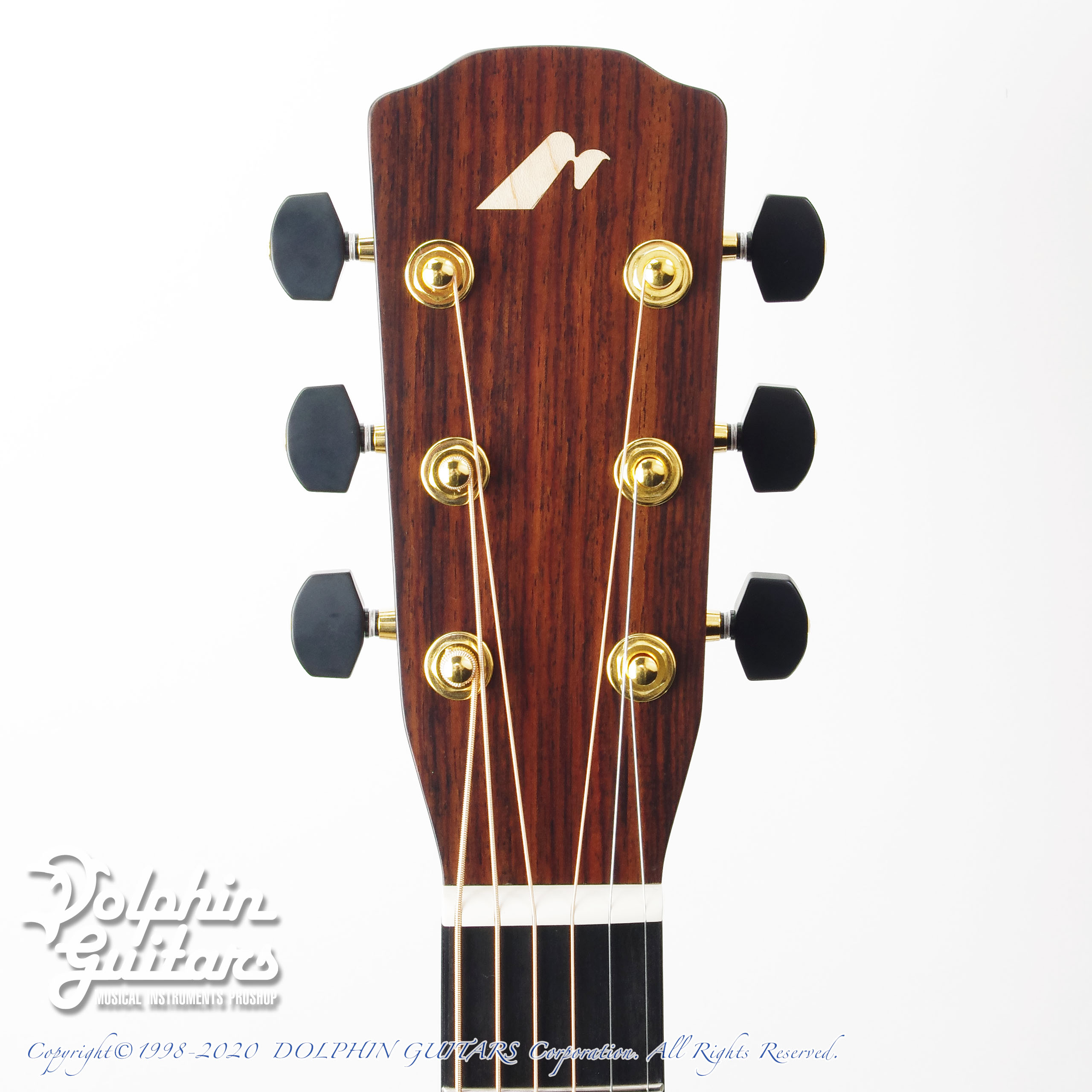 シトカスプルースTOP、インディアン ローズウッドS&B、マホガニーネック(アジャスタブルロッド)、エボニー指板&ブリッジ、"ピンレス"スルーブリッジ、45mmナット幅、652mmスケール、Gotohペグ仕様。