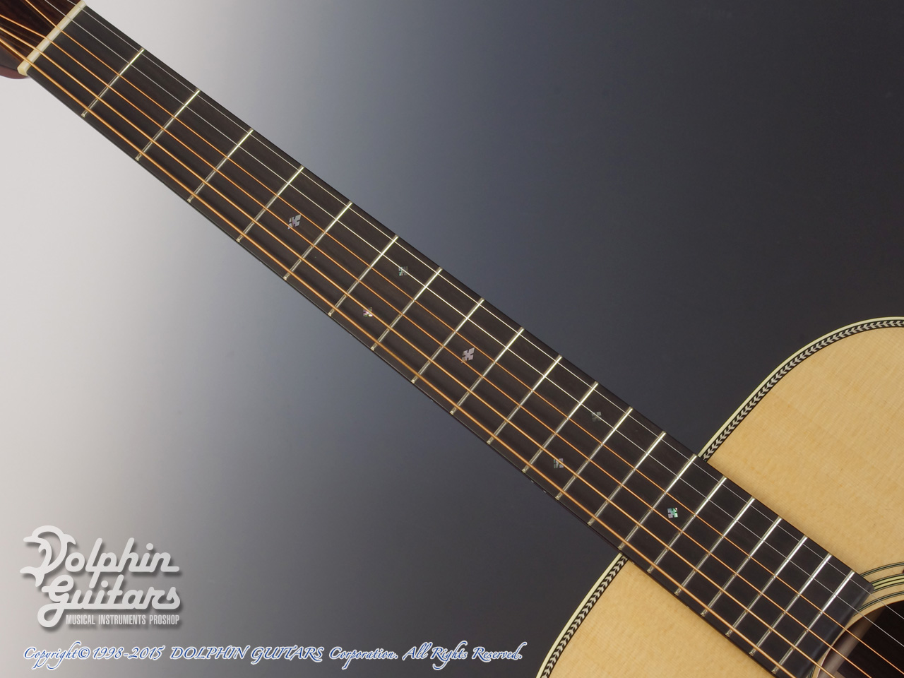 シトカ・スプルーストップ、インディアン・ローズウッド・サイド&バック、マホガニー1ピース・ネック、エボニー指板&ブリッジ、ロングサドル、ゴトー製オープンバック・ペグ、ダイアモンド・スクエア指板インレイ、ベッコウ柄ピックガード、ヘリンボーン・トリム、アイボロイド・バインディング、ジグザグバック・ストリップ、トップ構造は軽快でありながらディープ&シリアスな音色をもたらすリアシフトスキャロップブレイシングとなっています。