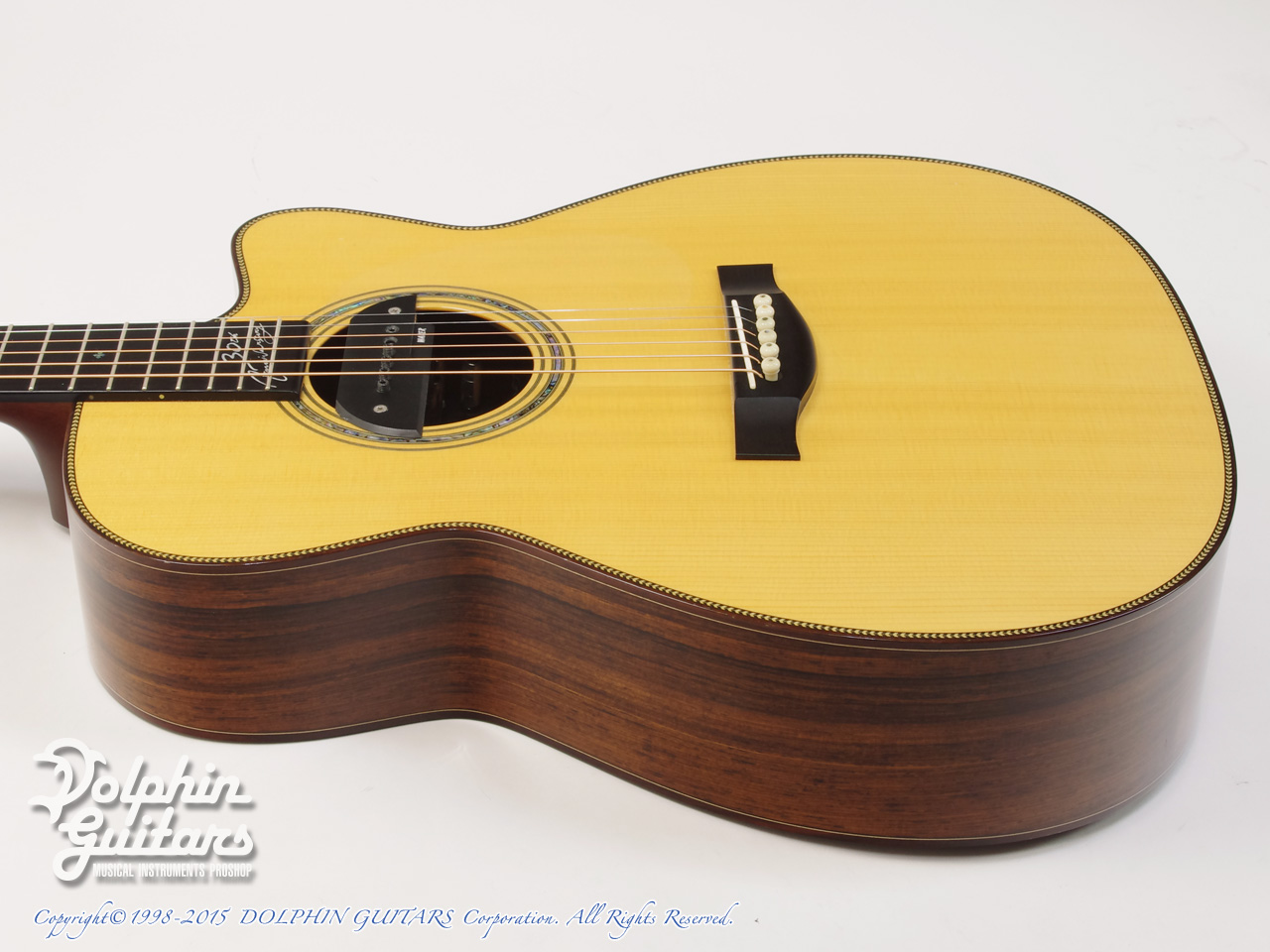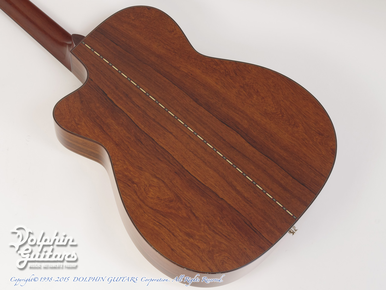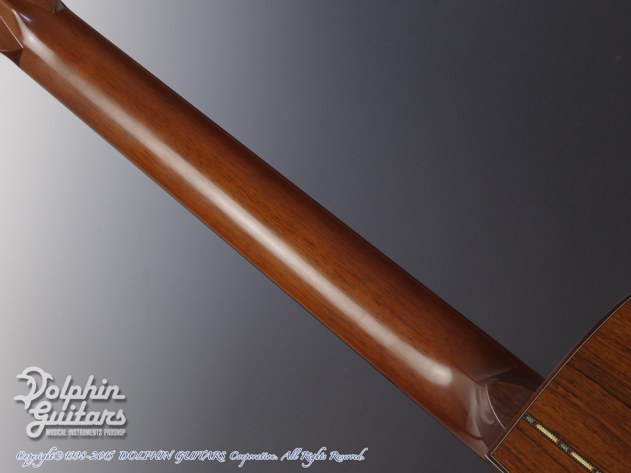 ジャーマン・スプルーストップ、マダガスカル・ローズウッドS&B、マホガニーネック(アジャスタブルロッド)、エボニー指板&ブリッジ、ウッド・バインディング、アバロントリム、ゴトーオープンバック糸巻き仕様。