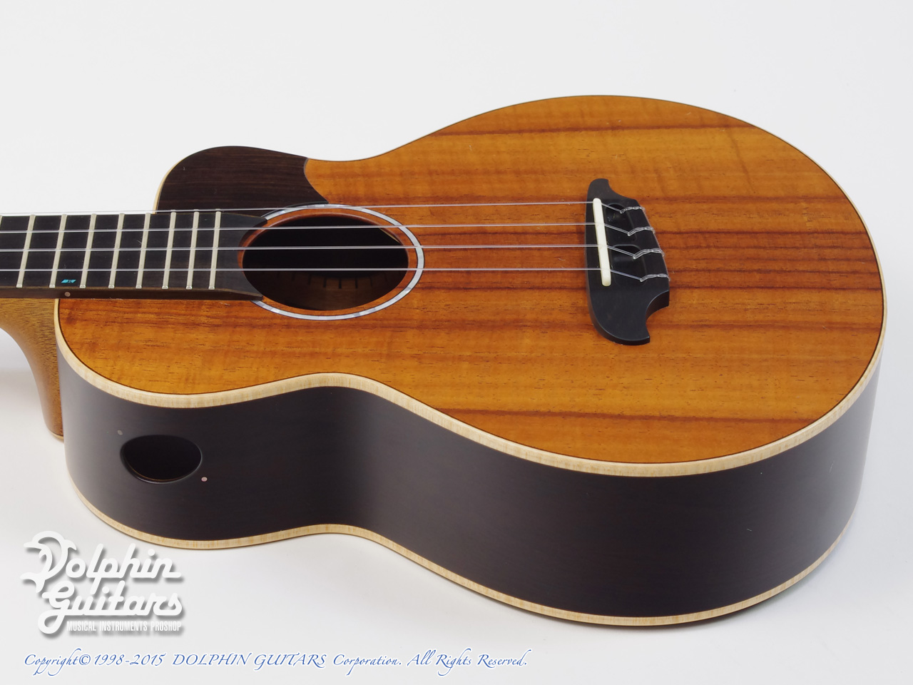 本器はテナー・ウクレレ、カッタウェイ、サイド・ホール仕様のVT-CW SSH (Koa/African Blackwood) 。