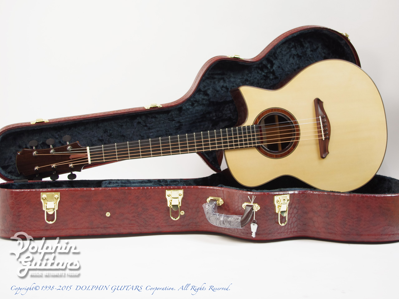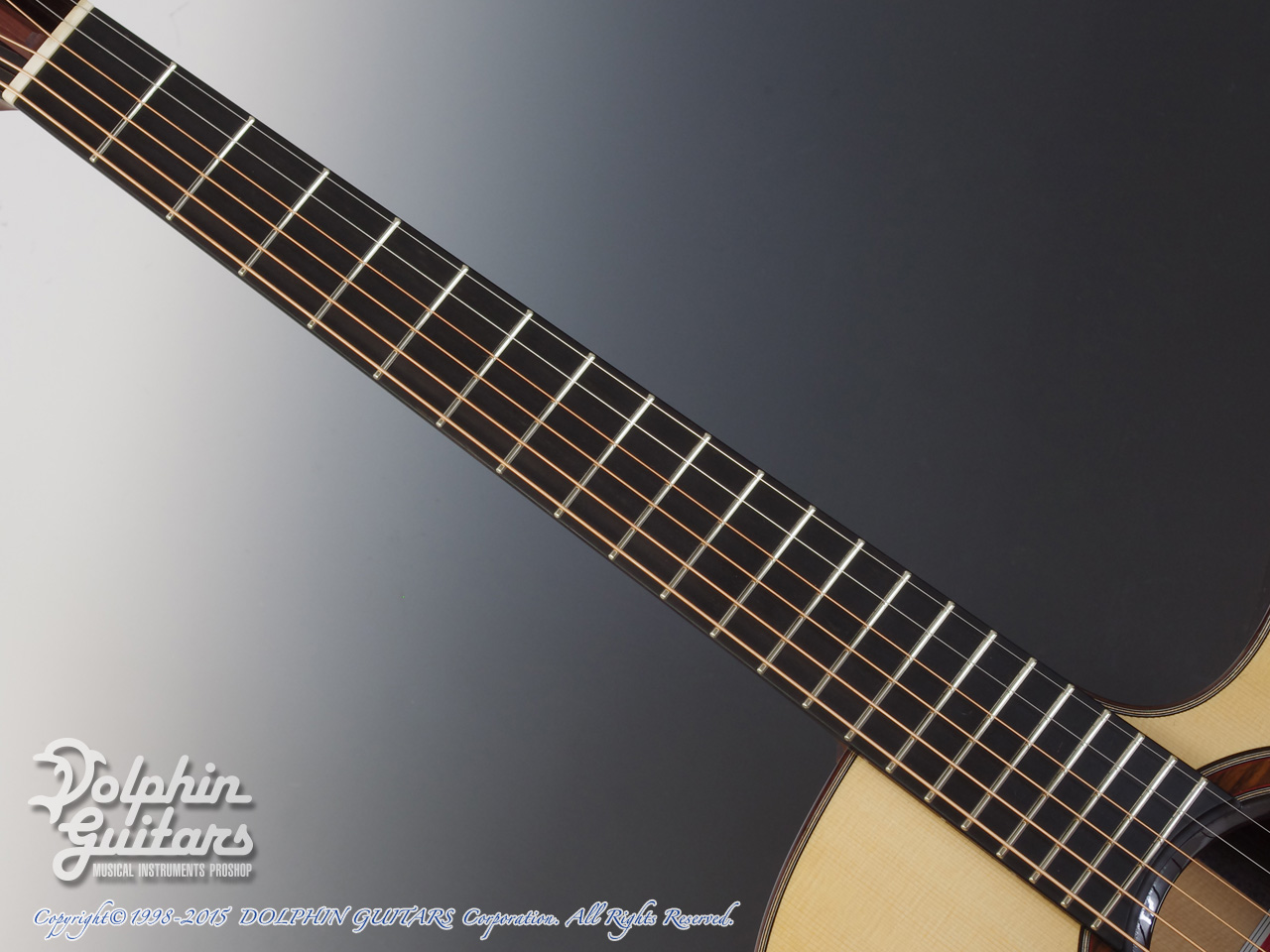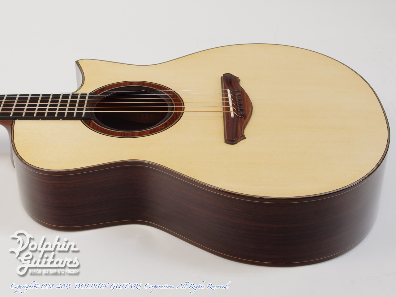 イングルマン・スプルーストップ、インディアン・ローズウッドS&B、マホガニーネック、アジャスタブルロッド、44mmナット幅、エボニー指板&ブリッジ、ウッドロゼッタ、ゴトー510糸巻き仕様。