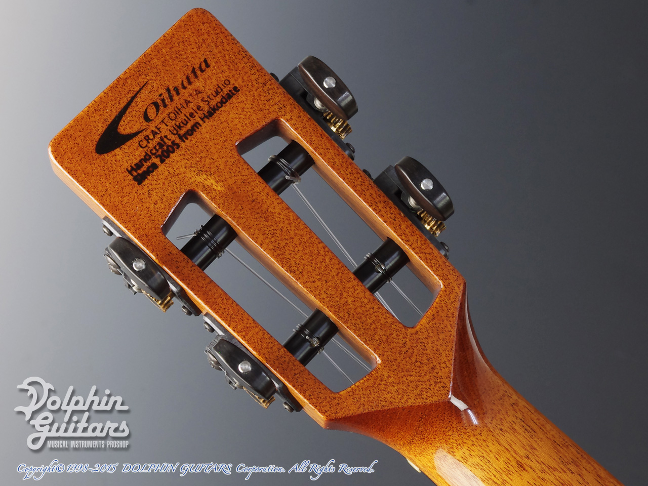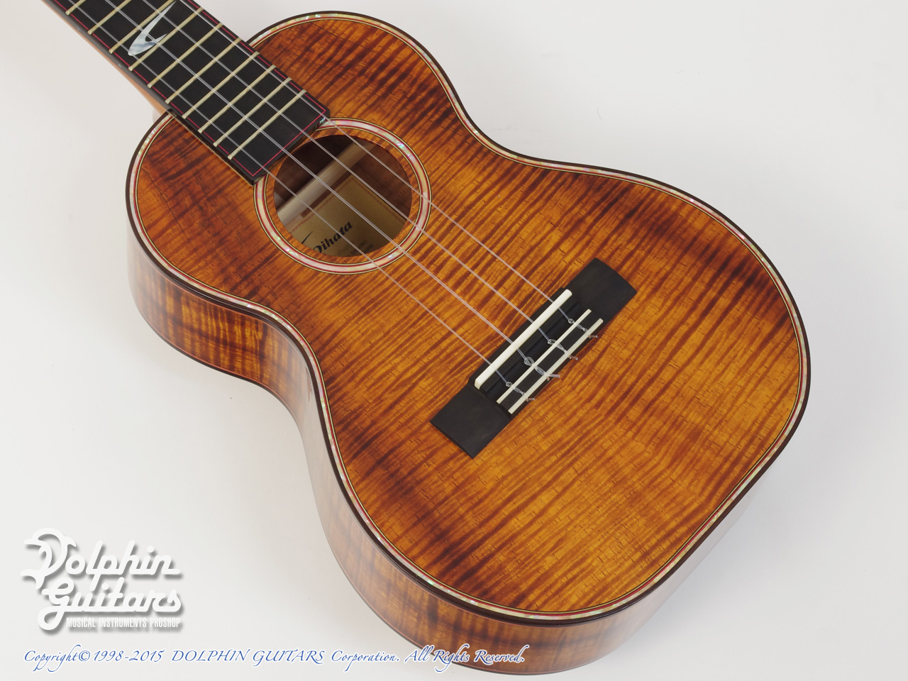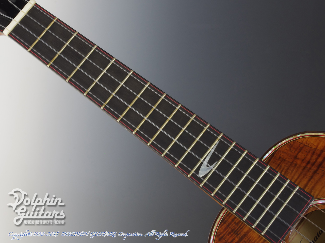 マスターグレードのハワイアンコアボディ、Donkey Shell (アワビ貝)パーフリング、スロテッドヘッド、カリフォルニアのペグ職人リックシャープ氏作製スロッテドペグ。