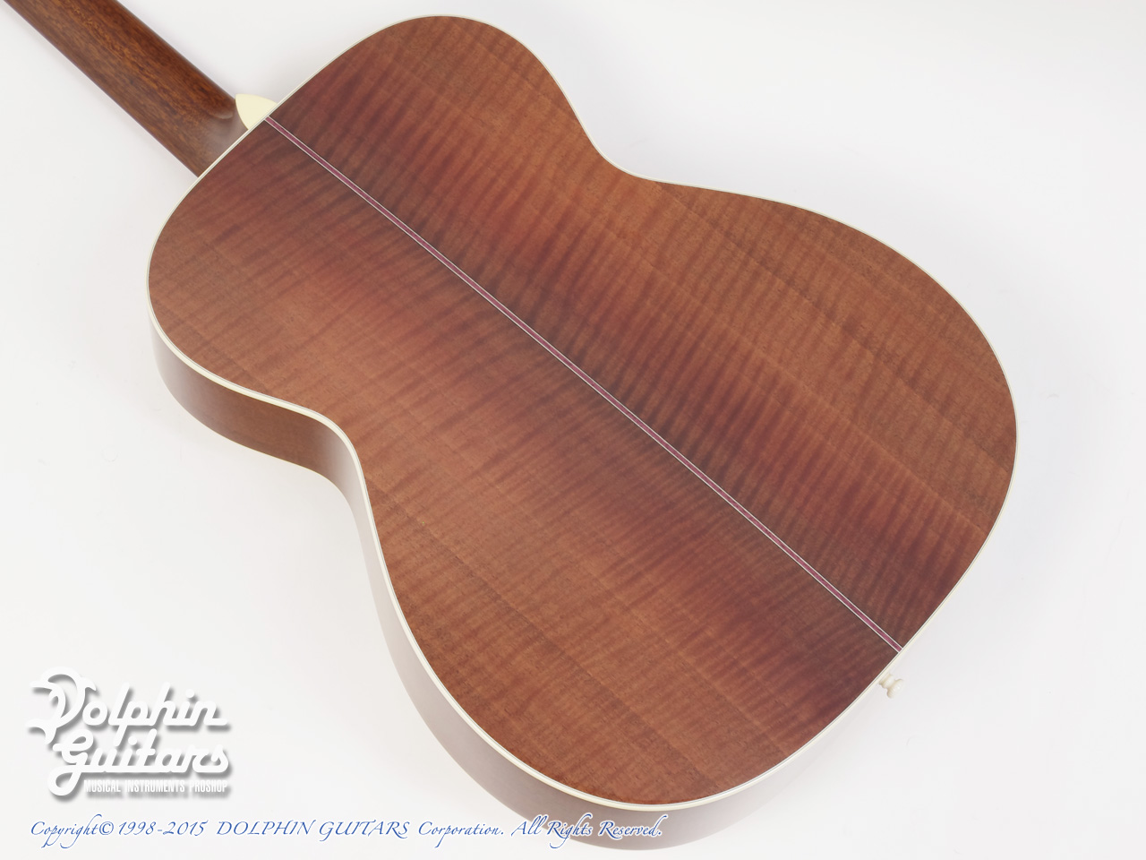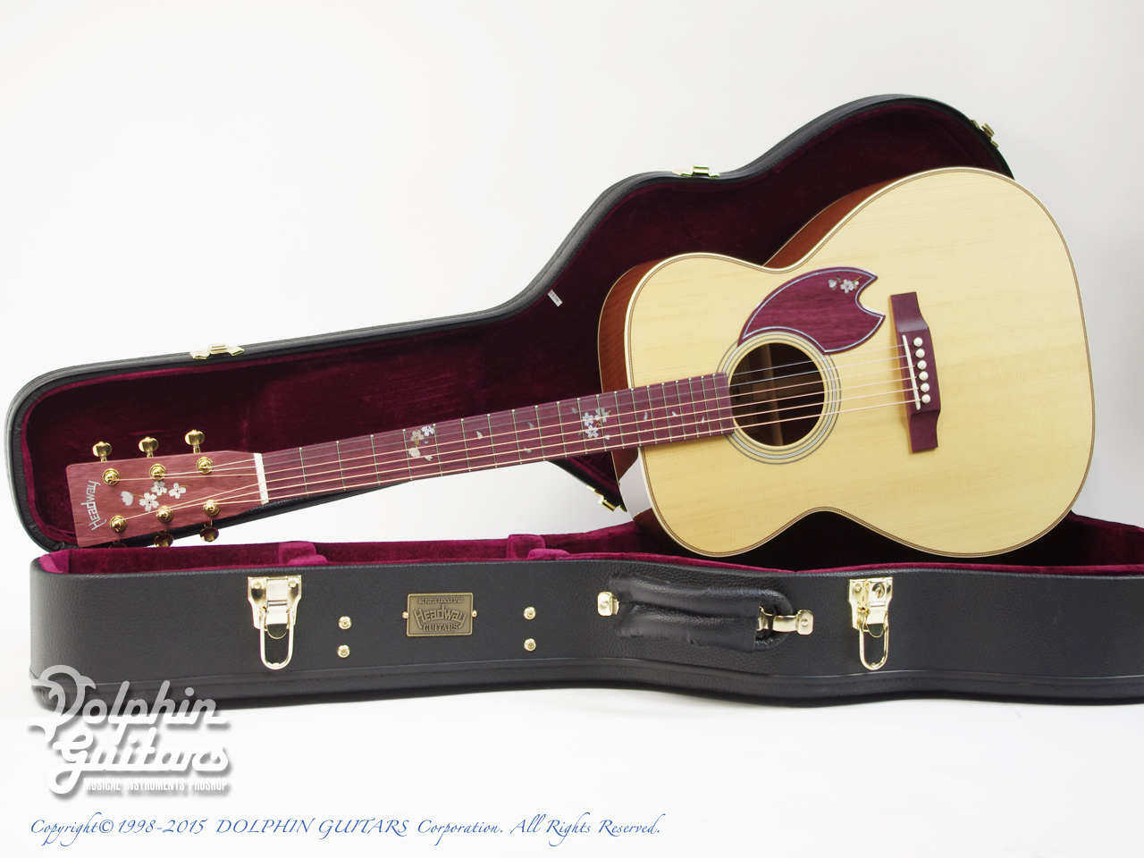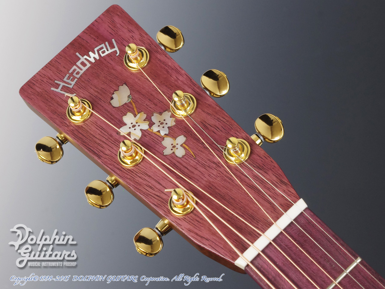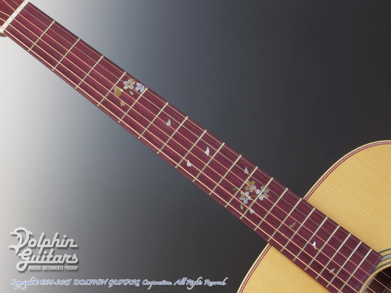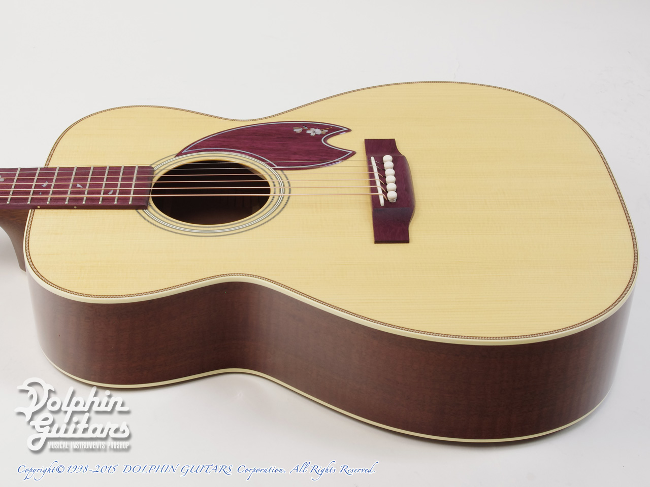 シトカ・スプルース・トップ、八丈島サクラ・サイド&バック、アフリカン・マホガニー1ピース・ネック、パープルハート指板&駒&ピックガード。