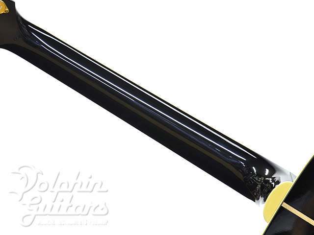 アバロンで縁取られたブラックボディにホワイトピックガード、インパクトがあり、美しいコントラストを持つ本器はファンならずとも目を惹くギターです。