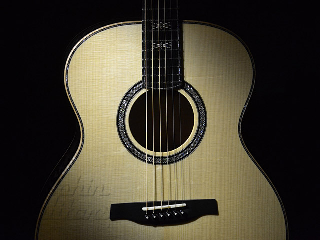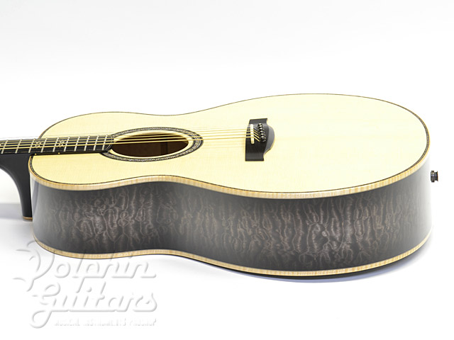 アディロンダック・スプルース・トップ、キルテッド・メイプル・サイド&バック、カーリーメイプル・ネック、エボニー指板&駒、アバロントリム、ケルティック・クロス・ロゼッタ。