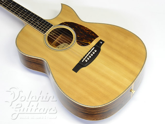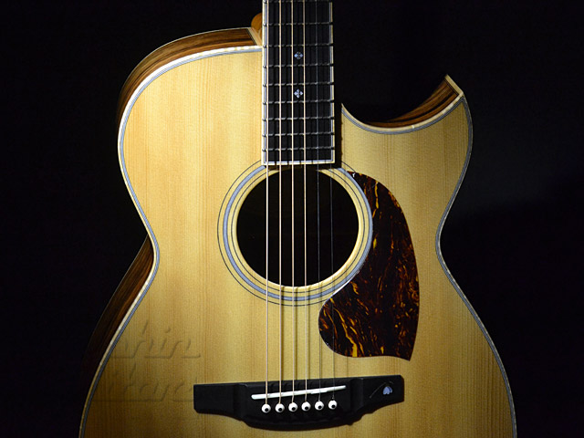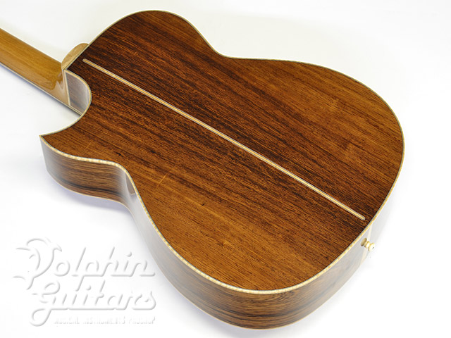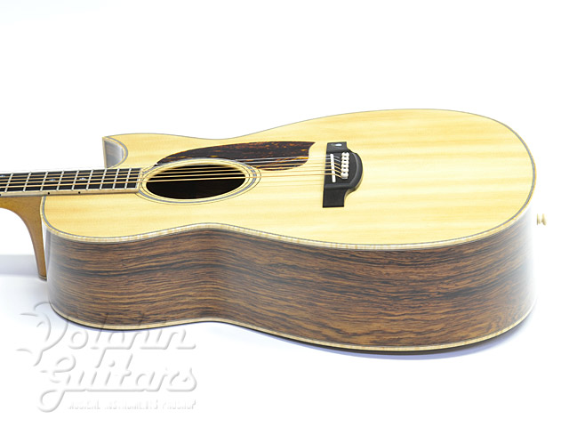 スプルース・トップ、ホンジュラスローズウッド・サイド、バック、マホガニーネック、エボニー指板&駒、フローレンタイン・カッタウェイ。