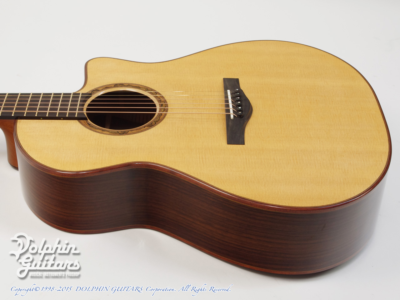 ルッツ・スプルーストップ、インディアンローズウッドS&B、ホンデュラスマホガニーネック(アジャスタブルロッド)、エボニー指板&駒、ウッドロゼッタ&バインディング、オールシェラック塗装、ゴトー510糸巻き仕様。