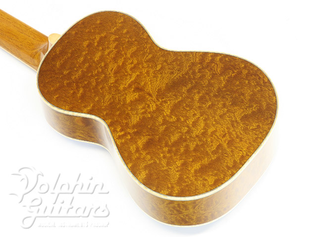 ボディとヘッド材には、均整の取れた美しいキルテッド・サペリを使用、マホガニー・ネック、エボニー指板&駒、メイプル・バインディング、アバロン・ロゼッタ仕様、ファンシーで美しい仕上がりとなっております。