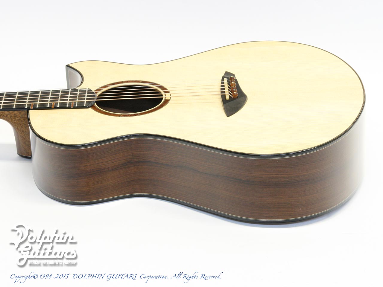 アディロンダック・スプルース・トップ、マダガスカルローズウッド・サイド&バック、エボニー指板&駒、エボニー・バインディング、ウェイバリー糸巻き。