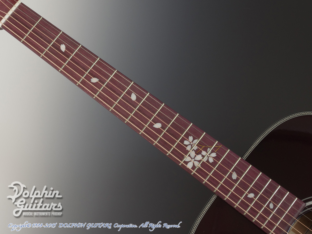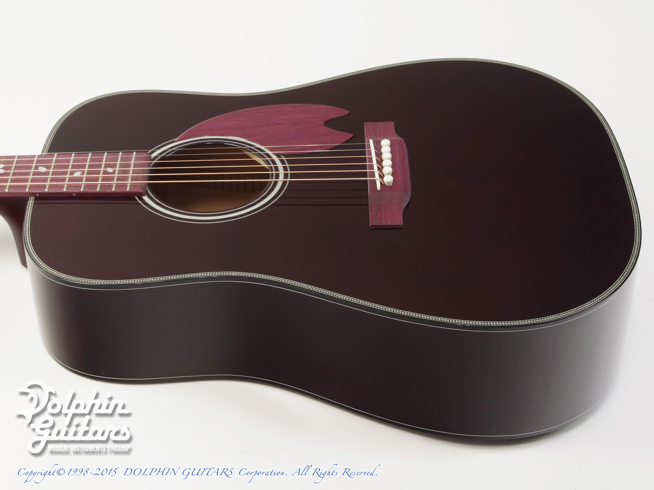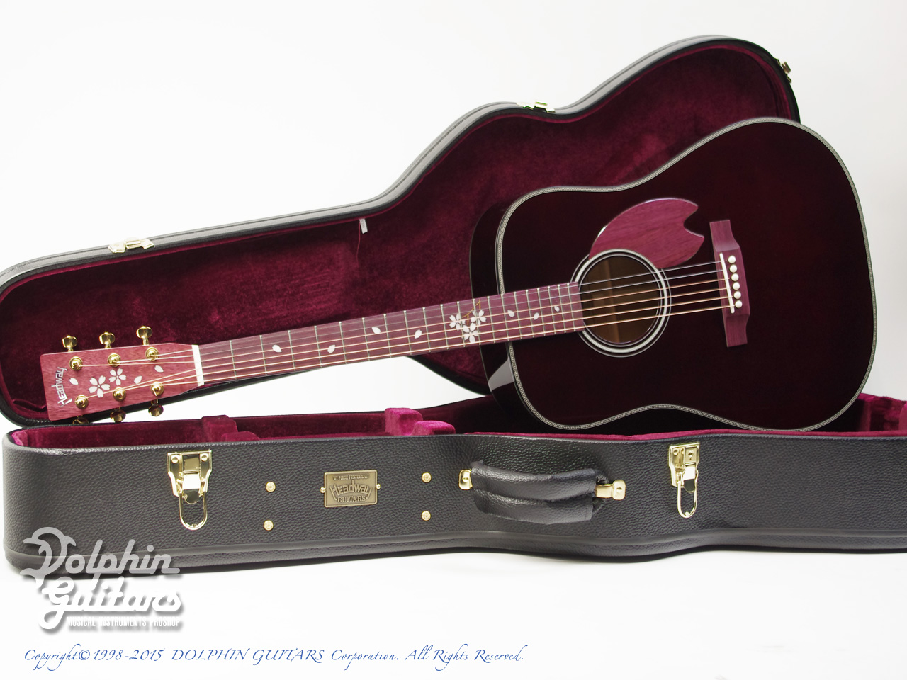 シトカ・スプルース・トップ、サクラ・サイド&バック、アフリカン・マホガニー・ネック、パープル・ハート指板&駒、ダーク・チェリー・カラー。