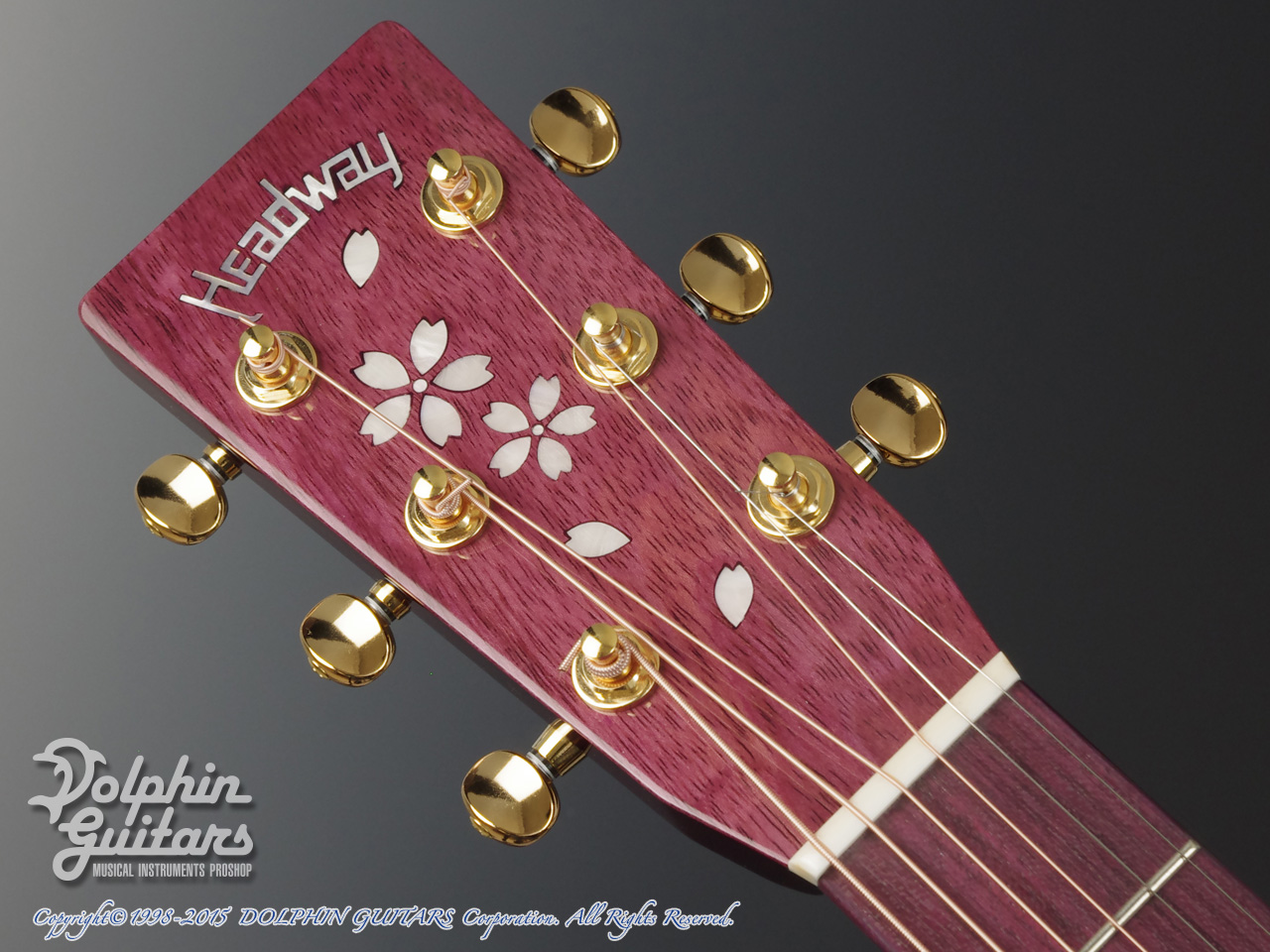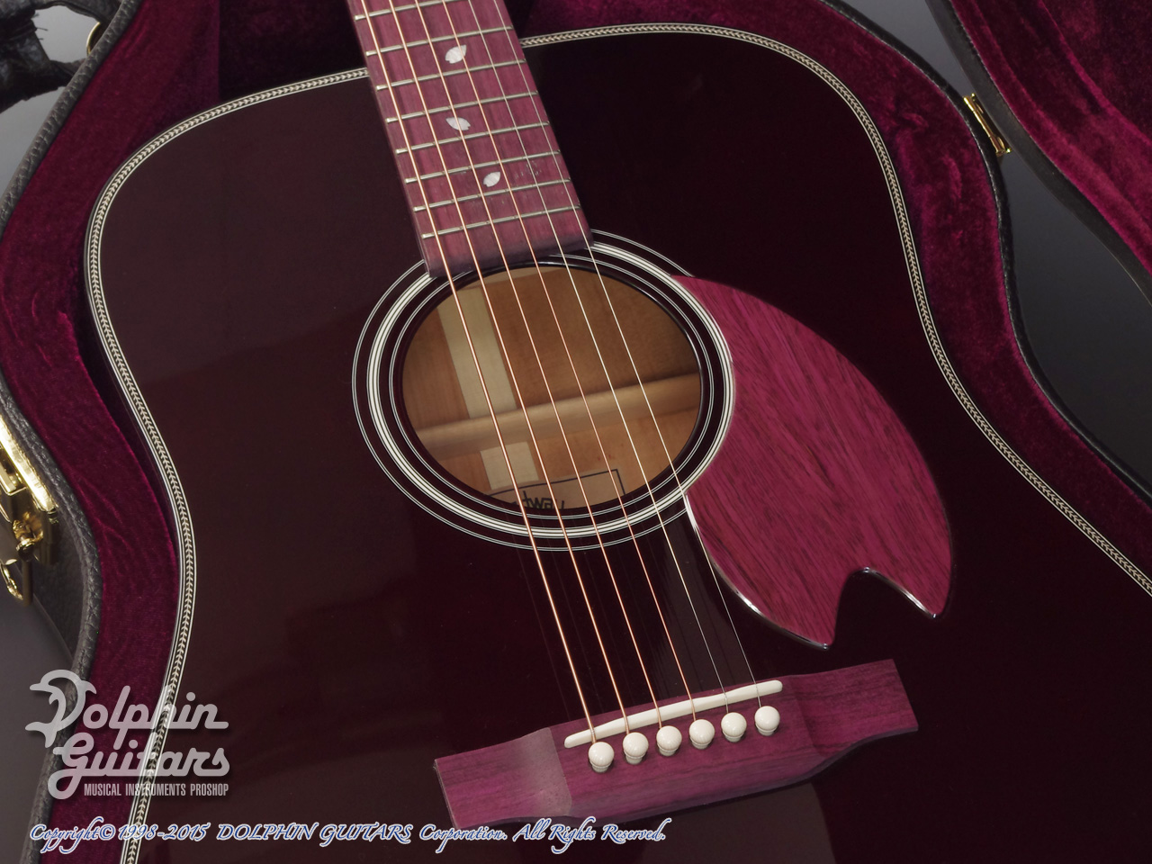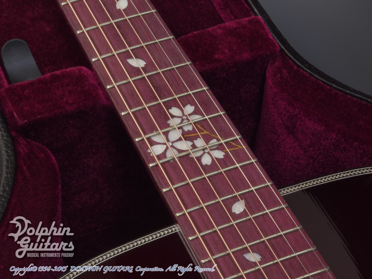 シトカ・スプルース・トップ、サクラ・サイド&バック、アフリカン・マホガニー・ネック、パープル・ハート指板&駒、ダーク・チェリー・カラー。