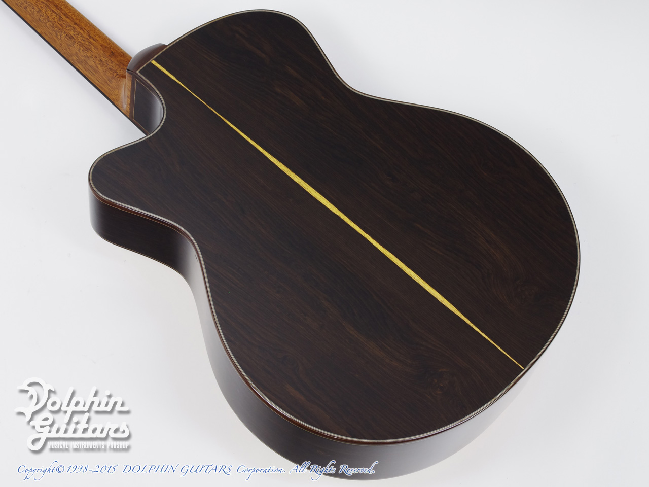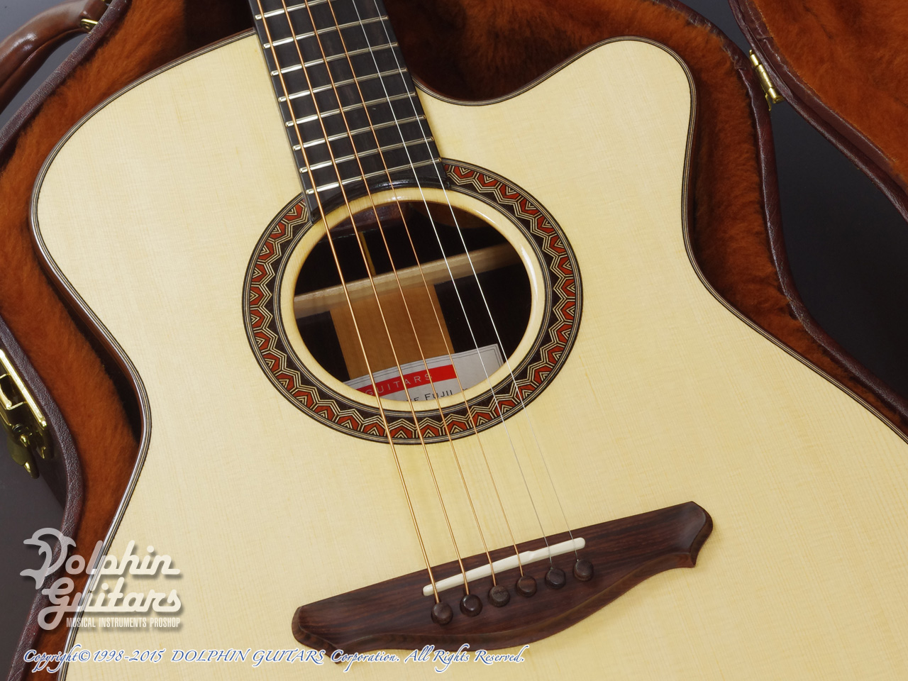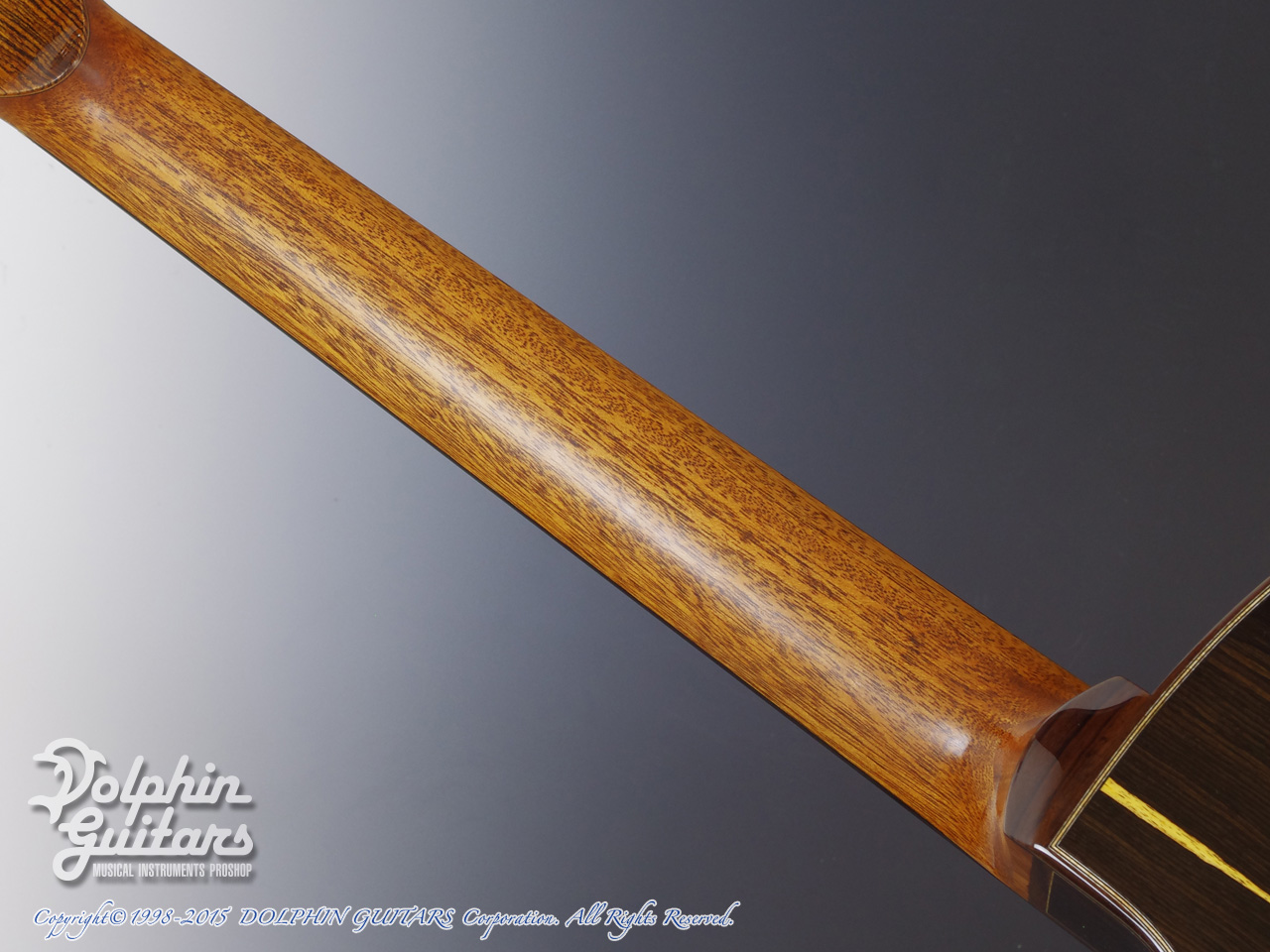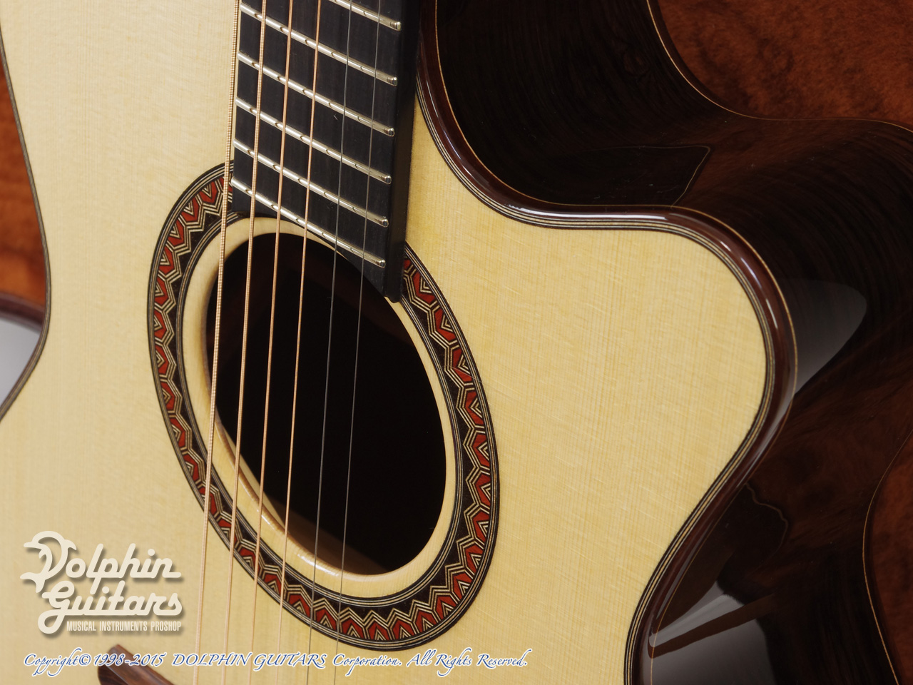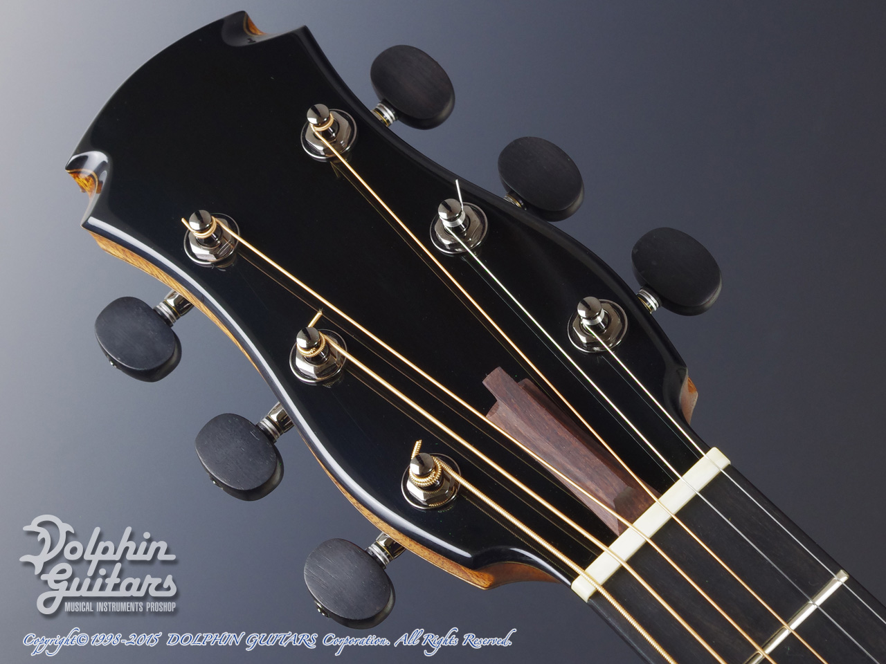 カルパチアン・スプルーストップ、アフリカンブラックウッドS&B、マホガニーネック(アジャスタブルロッド)、44,5mmナット幅、エボニー指板、ローズウッドブリッジ、"モザイク"ウッドロゼッタ、ゴトー510糸巻き仕様、専用ハードケース付属。