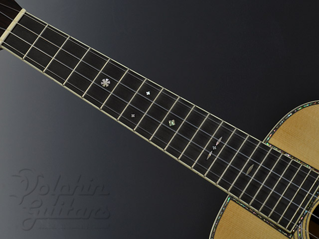 スプルース・トップ、インディアンローズウッド・サイド&バック、マホガニーネック (Vシェイプ)、エボニー指板&駒、ロングサドル、スノーフレーク&キャッツアイ・インレイ、ゴトー糸巻き。