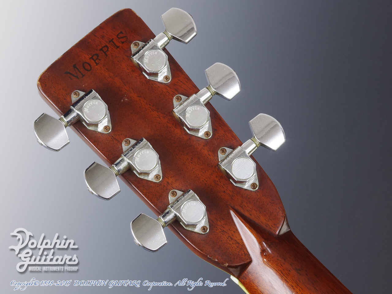 スプルース・トップ、ローズウッドサイド、ローズ&メイプルバック、マホガニーネック、ローズウッド指板&ブリッジ、イミテーション・ボディトリム、縦ロゴ・モーリスインレイ、オリジナル糸巻き。