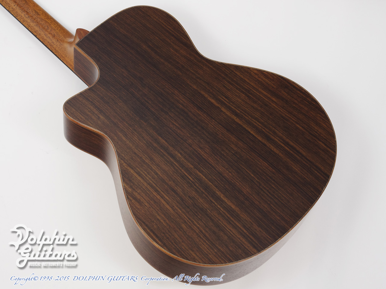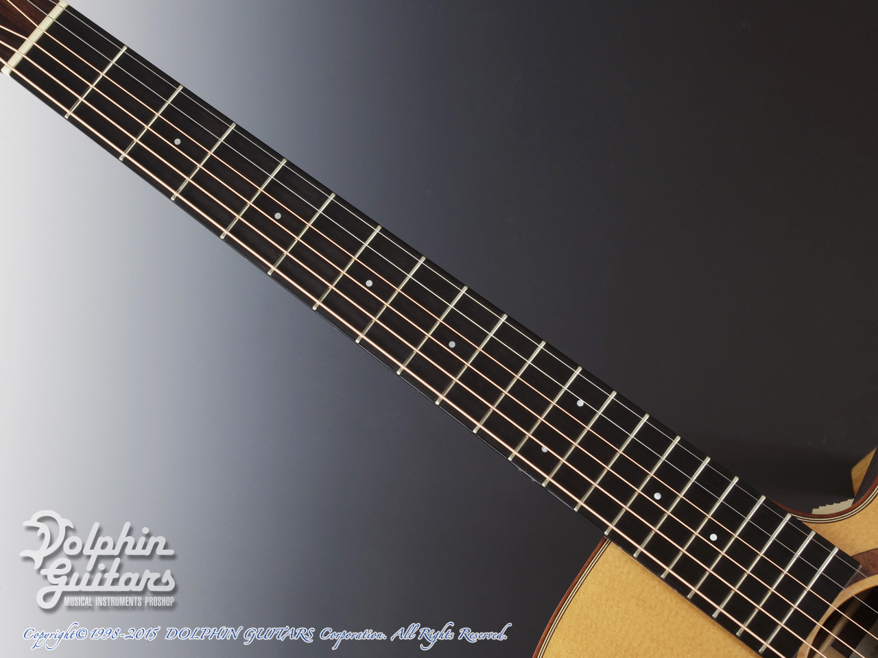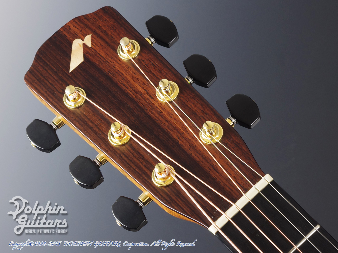 シトカ・スプルーストップ、インディアンローズウッドS&B、マホガニーネック(アジャスタブルロッド)、エボニー指板&ブリッジ、"ピンレス"スルーブリッジ、45mmナット幅、652mmスケール、ゴトー製糸巻き仕様。