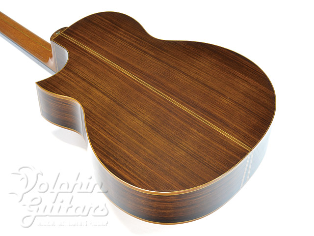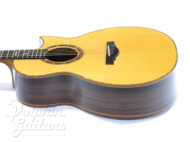 ・ イングルマン・スプルース・トップ、ローズウッド・サイド&バック、ホンジュラスマホガニー・ネック、エボニー指板&駒、ウッド&アバロン・ロゼッタ、アバロン・ボディトリム、フローレンタイン・カッタウェイ。