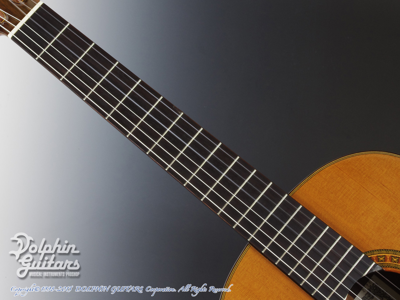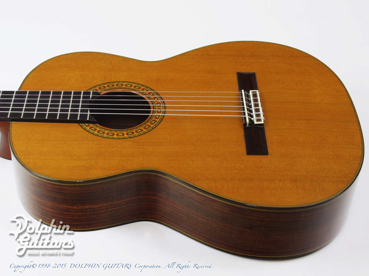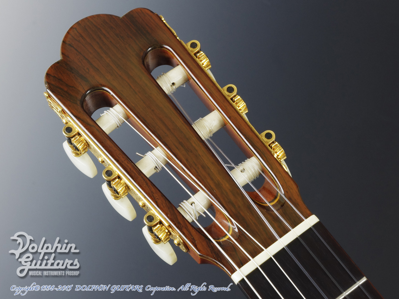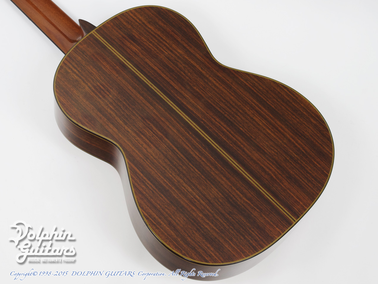 シダートップ、インディアン・ローズウッドS&B、マホガニーネック、エボニー指板、ローズウッドブリッジ、モザイクロゼッタ、ゴトー糸巻き仕様。