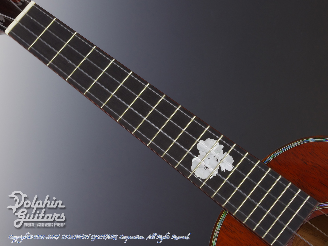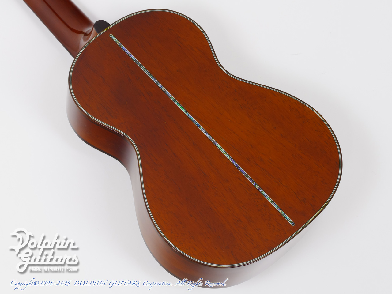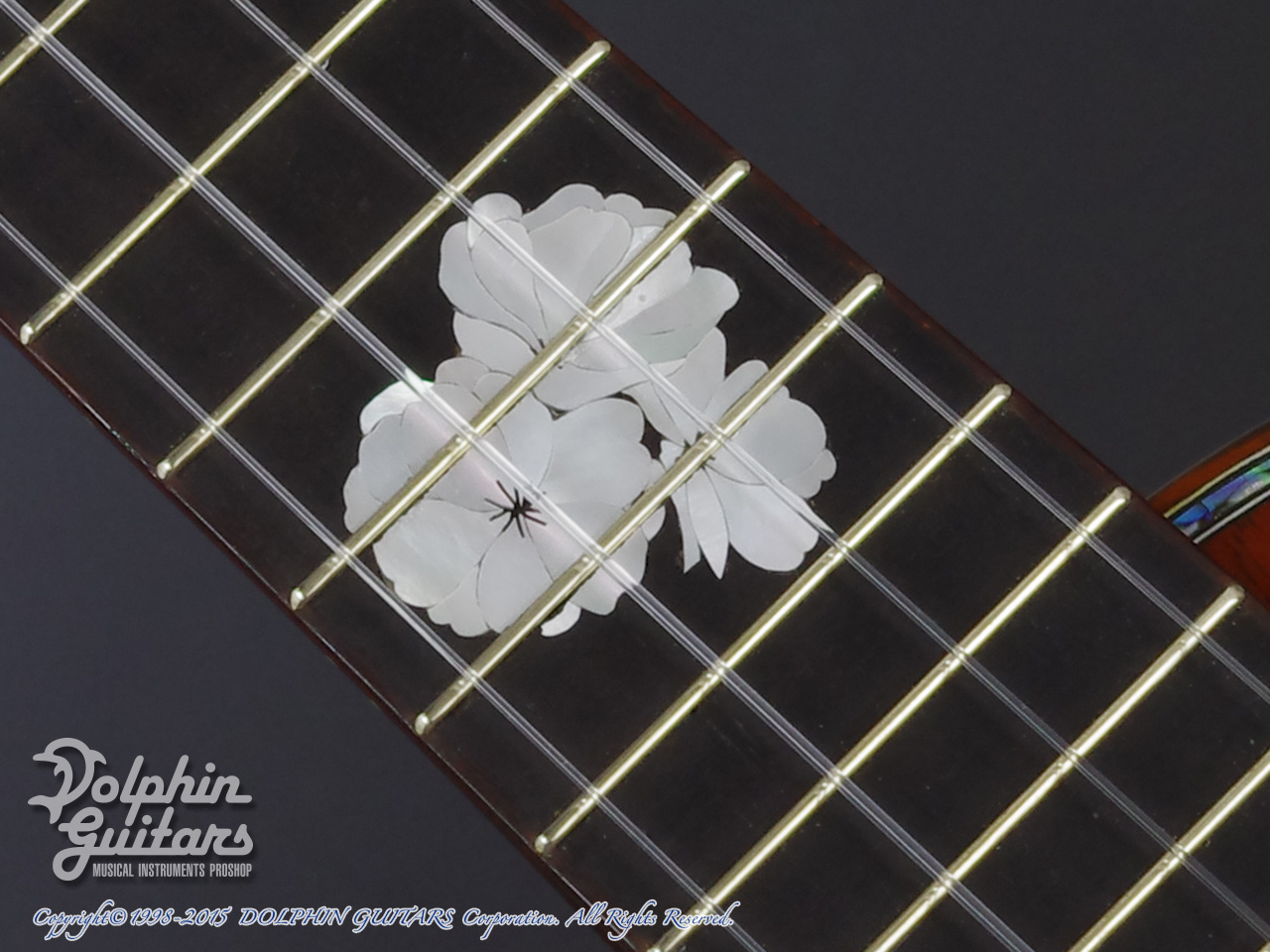 ホンジュラス・マホガニー・ボディ、マホガニー・ネック、エボニー指板&駒、”桜”指板インレイ、アバロン・パーフリング&アバロン・ロゼッタ、ウッド・バインディング、スロテッド・ヘッド。