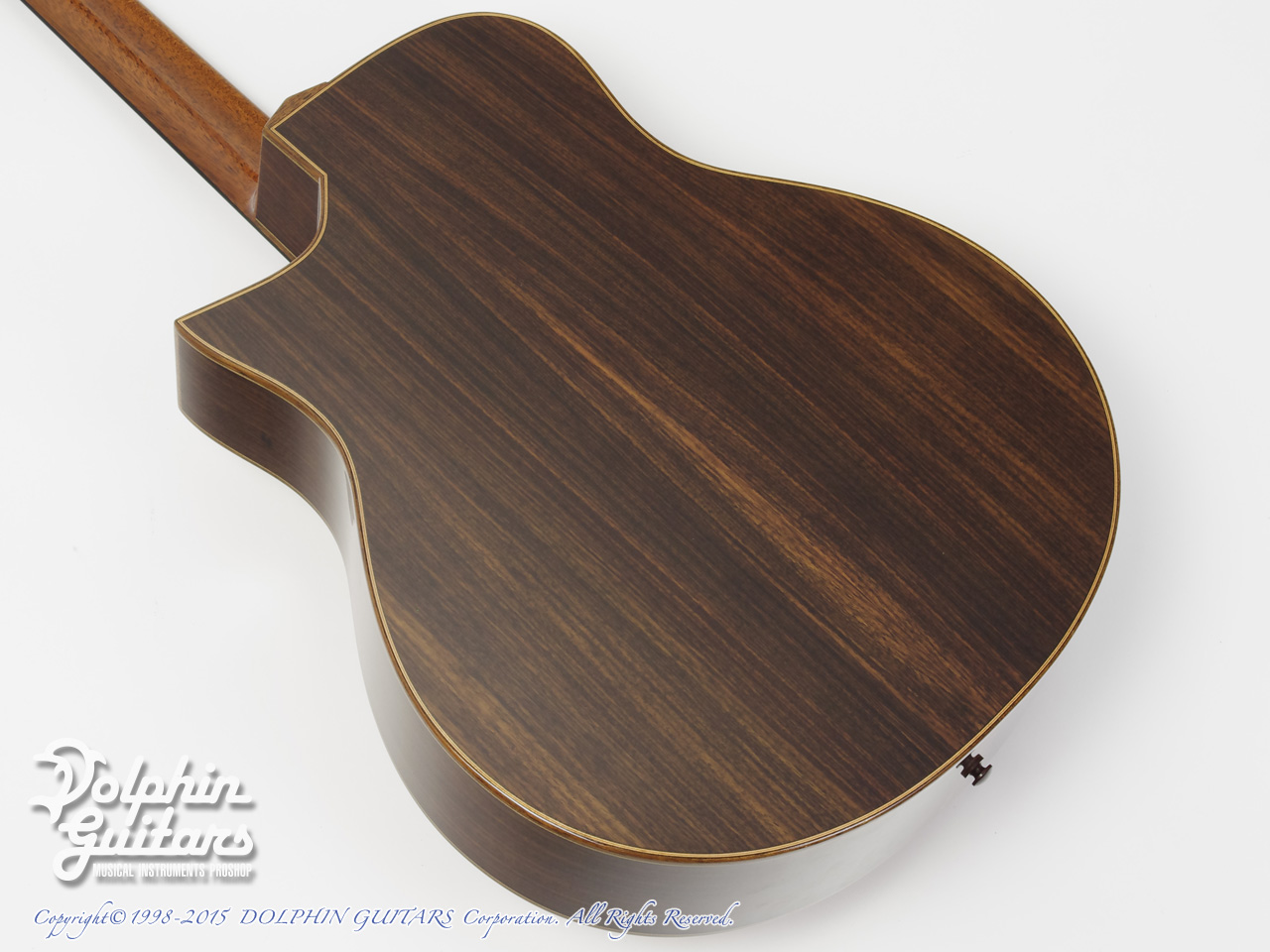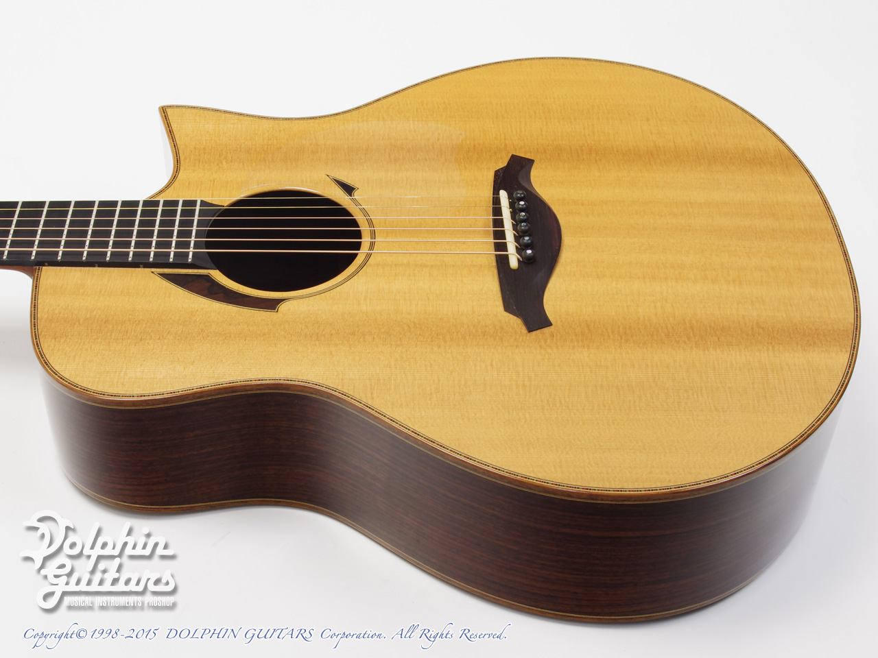 シトカ・スプルーストップ、インディアン・ローズウッドS&B、マホガニーネック(アジャスタブルロッド)、エボニー指板&ブリッジ、44,5mmナット、645mmスケール、ゴトー製510糸巻き仕様。
