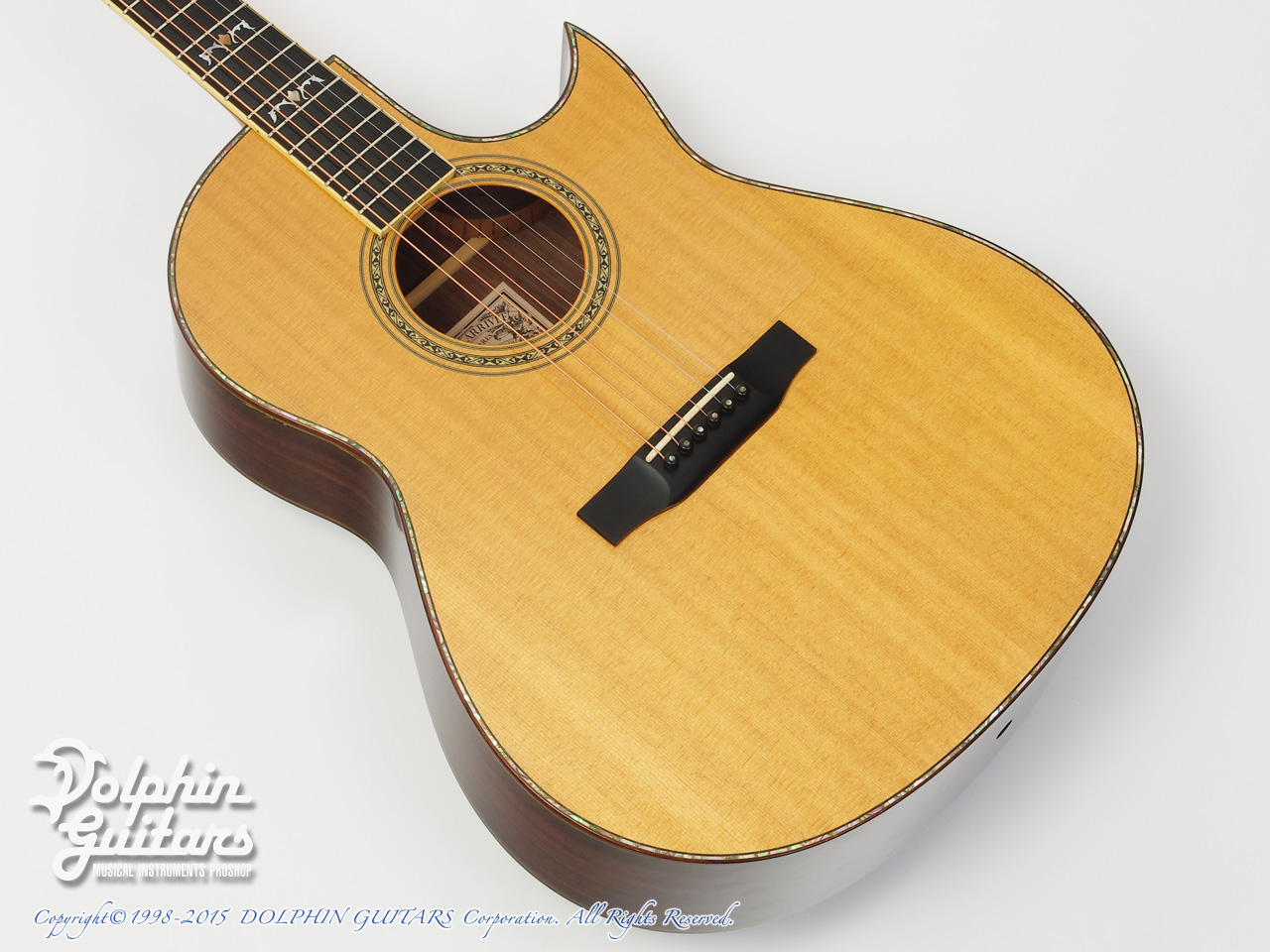シトカ・スプルーストップ、インディアン・ローズウッドS&B、マホガニーネック(アジャスタブルロッド)、エボニー指板&ブリッジ、アバロン・ボディーパーフリング&ロゼッタ、"Eagle"ヘッドインレイ、フローレンタイン・カッタウェイ、シャーラー製糸巻き。