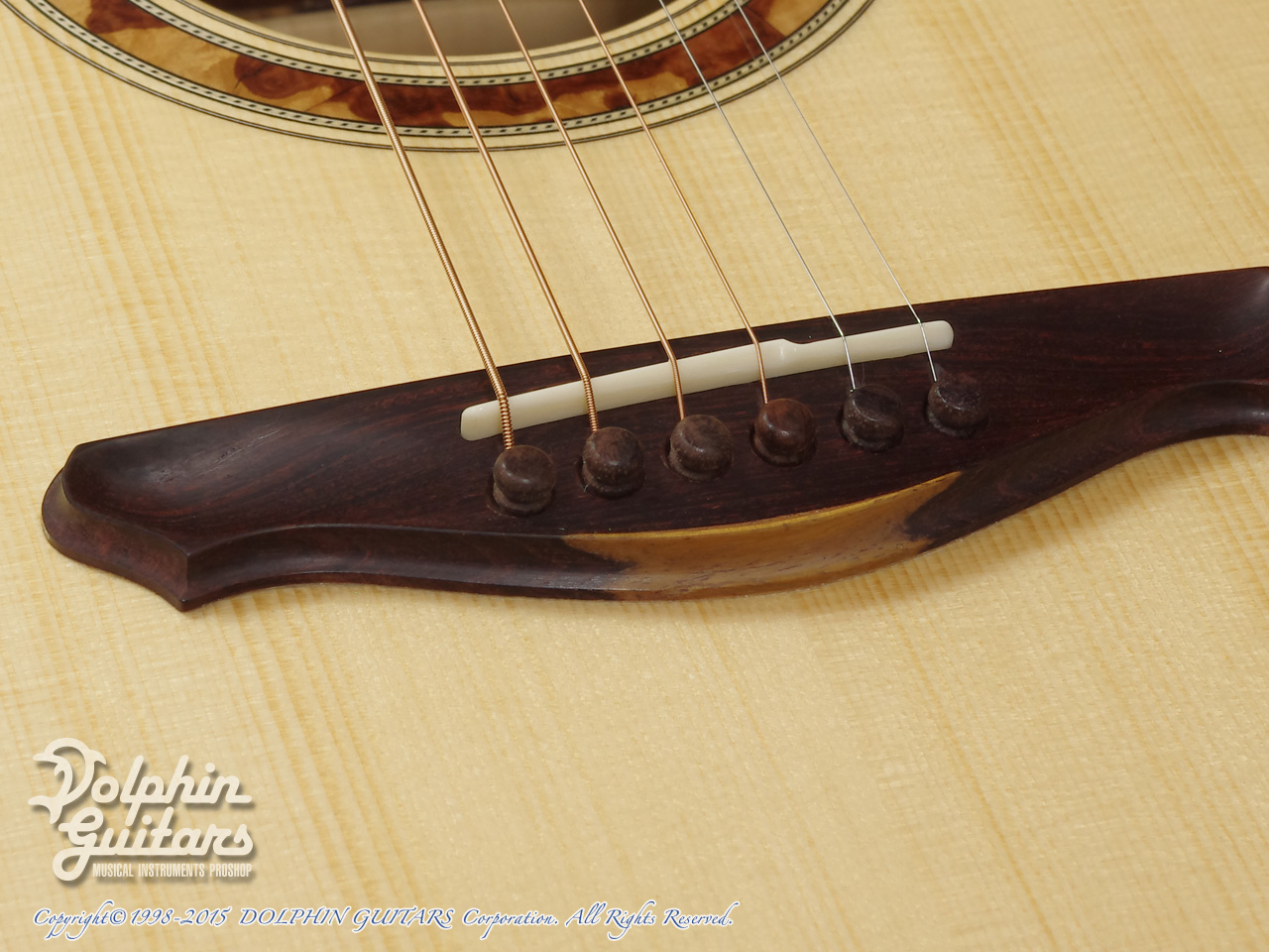 アディロンダックスプルースとアマゾンローズとの組み合わせからなるサウンドは重厚で力強く、ローミッドの深みは絶品です。プレーン弦の太く温かみ感じさせるトーンも素晴らしく、各弦・どのポジションも高級感溢れるサウンドとなっております。