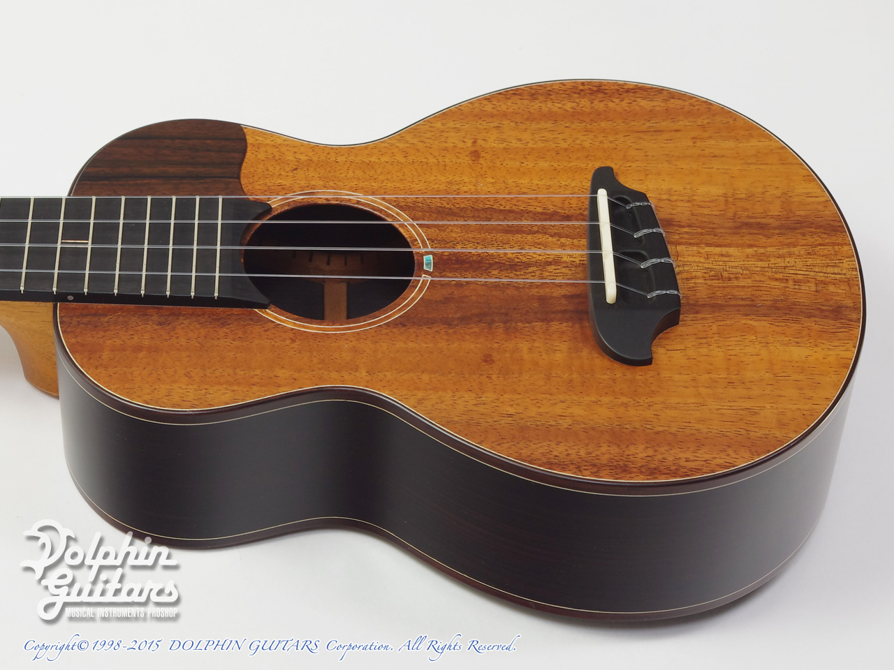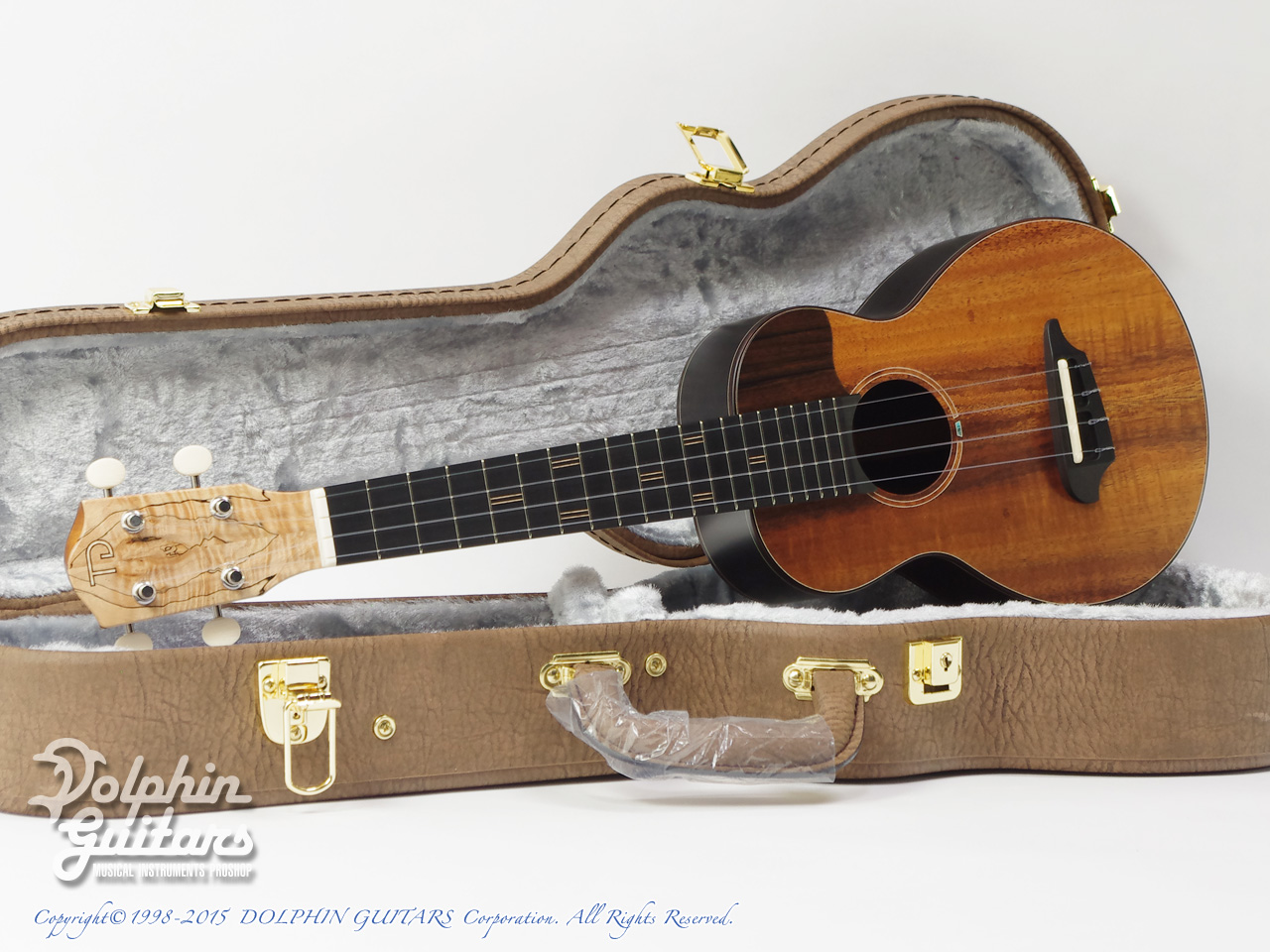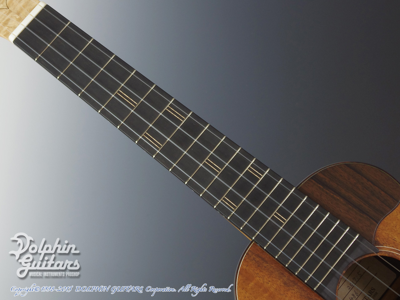 ハワイアンコアトップ、アフリカン・ブラックウッドS&B、ホンジュラスマホガニー1Pネック、エボニー指板&ブリッジ、ウッドPG、ウッドバインディング、Gotoh糸巻き。