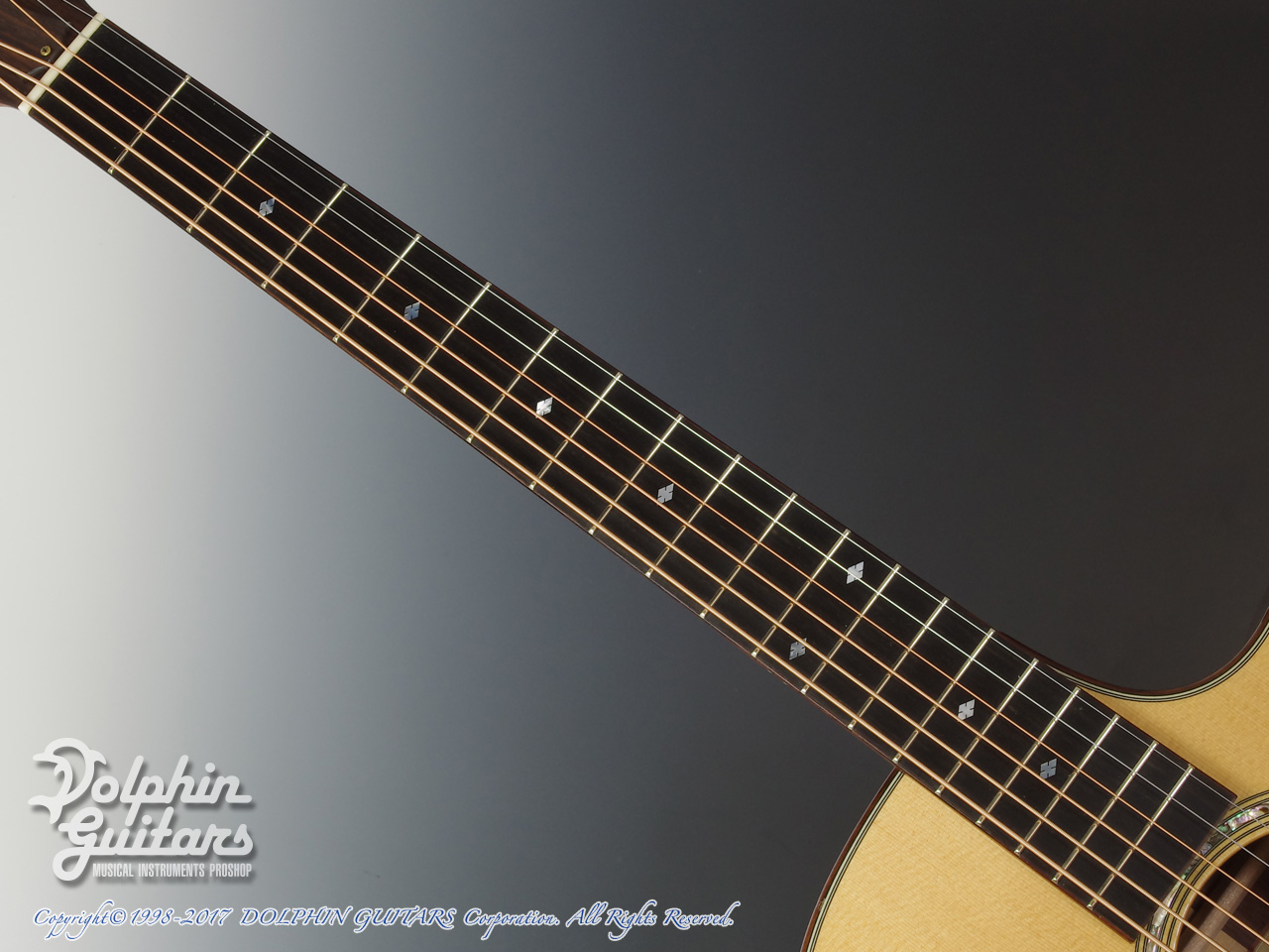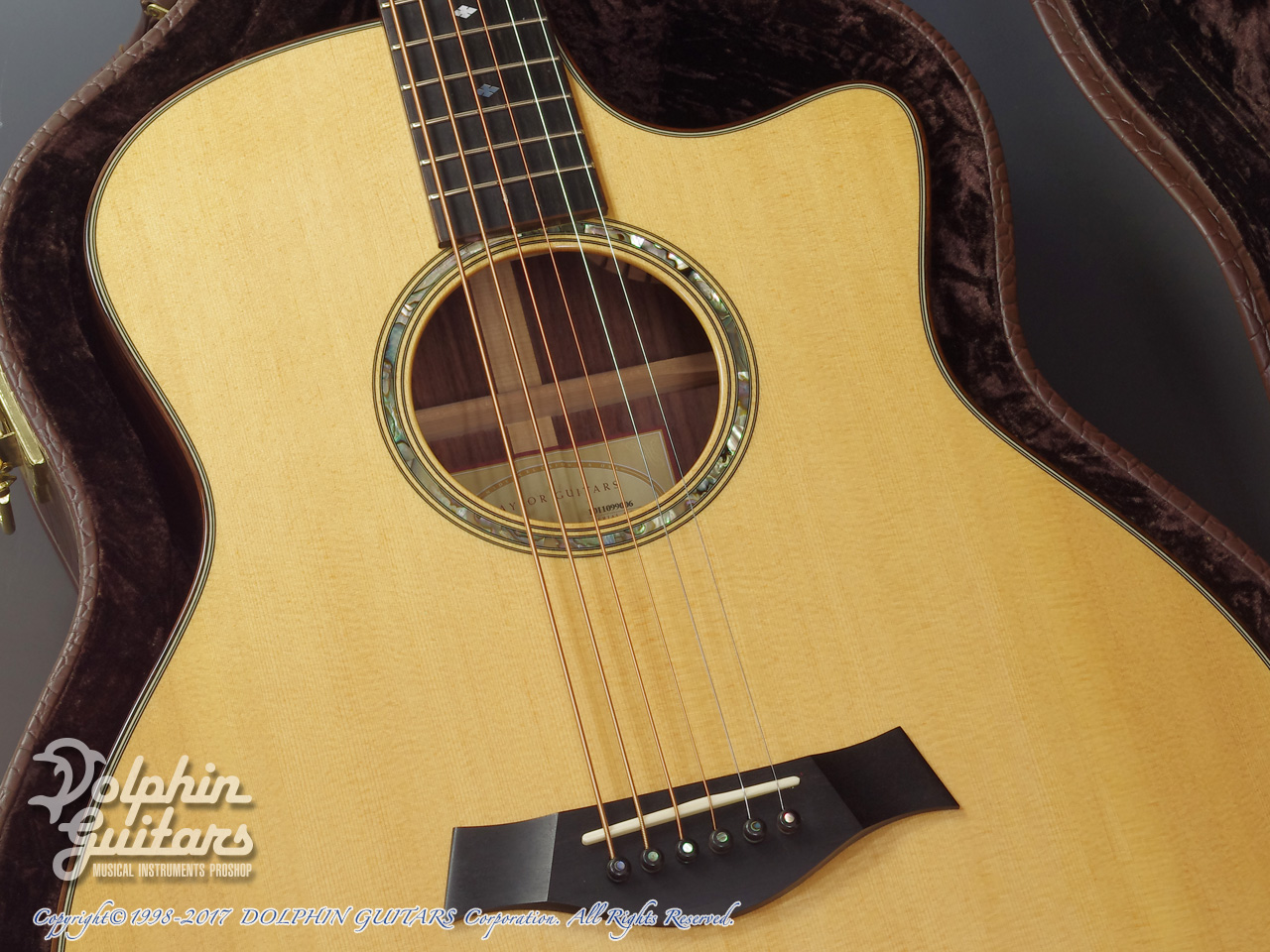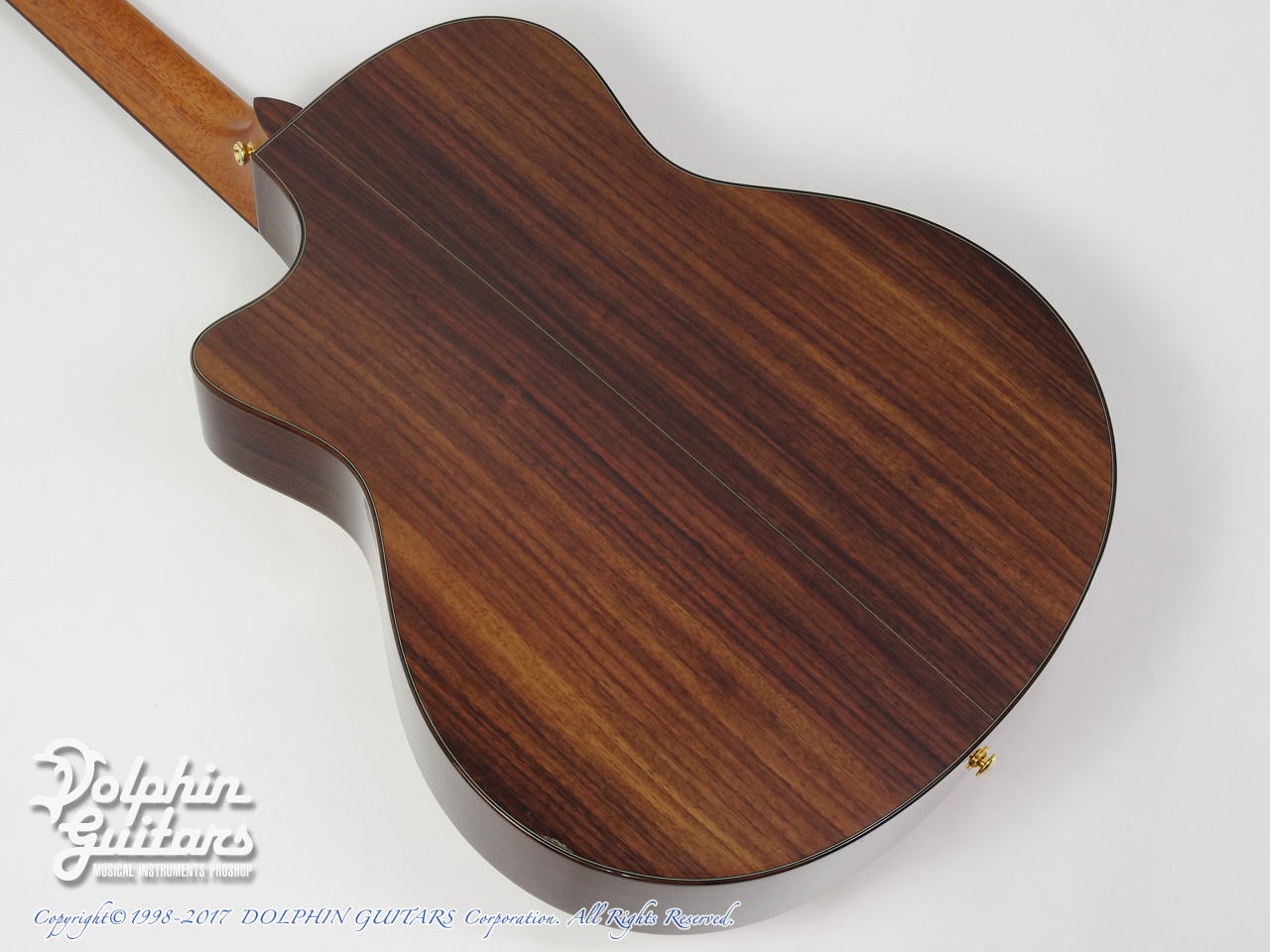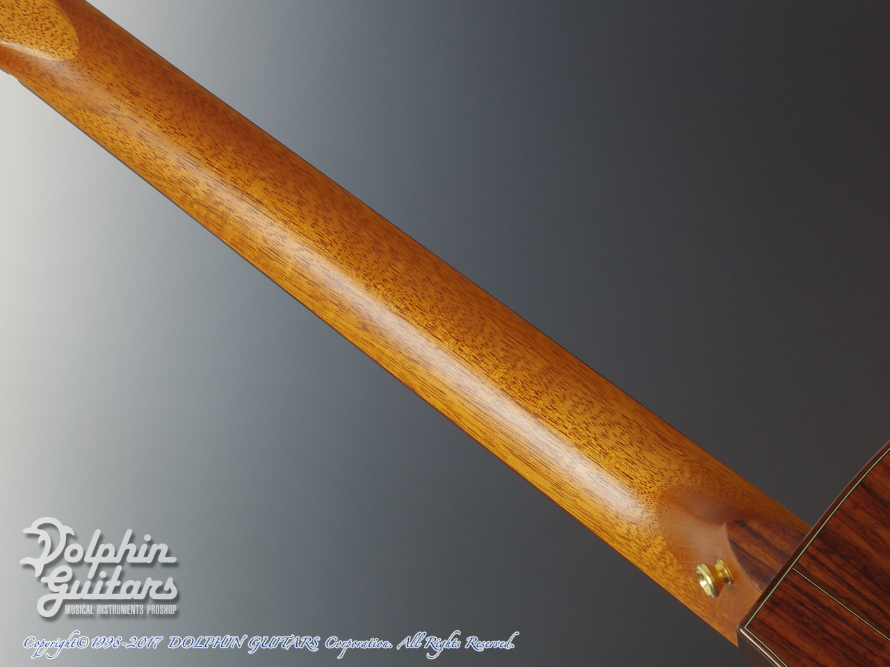 シトカ・スプルーストップ、インディアン・ローズウッドS&B、マホガニーネック、エボニー指板&ブリッジ、44,5mmナット、685mmスケール、シャーラー製糸巻き仕様。