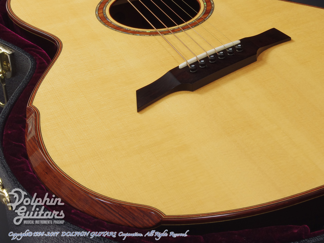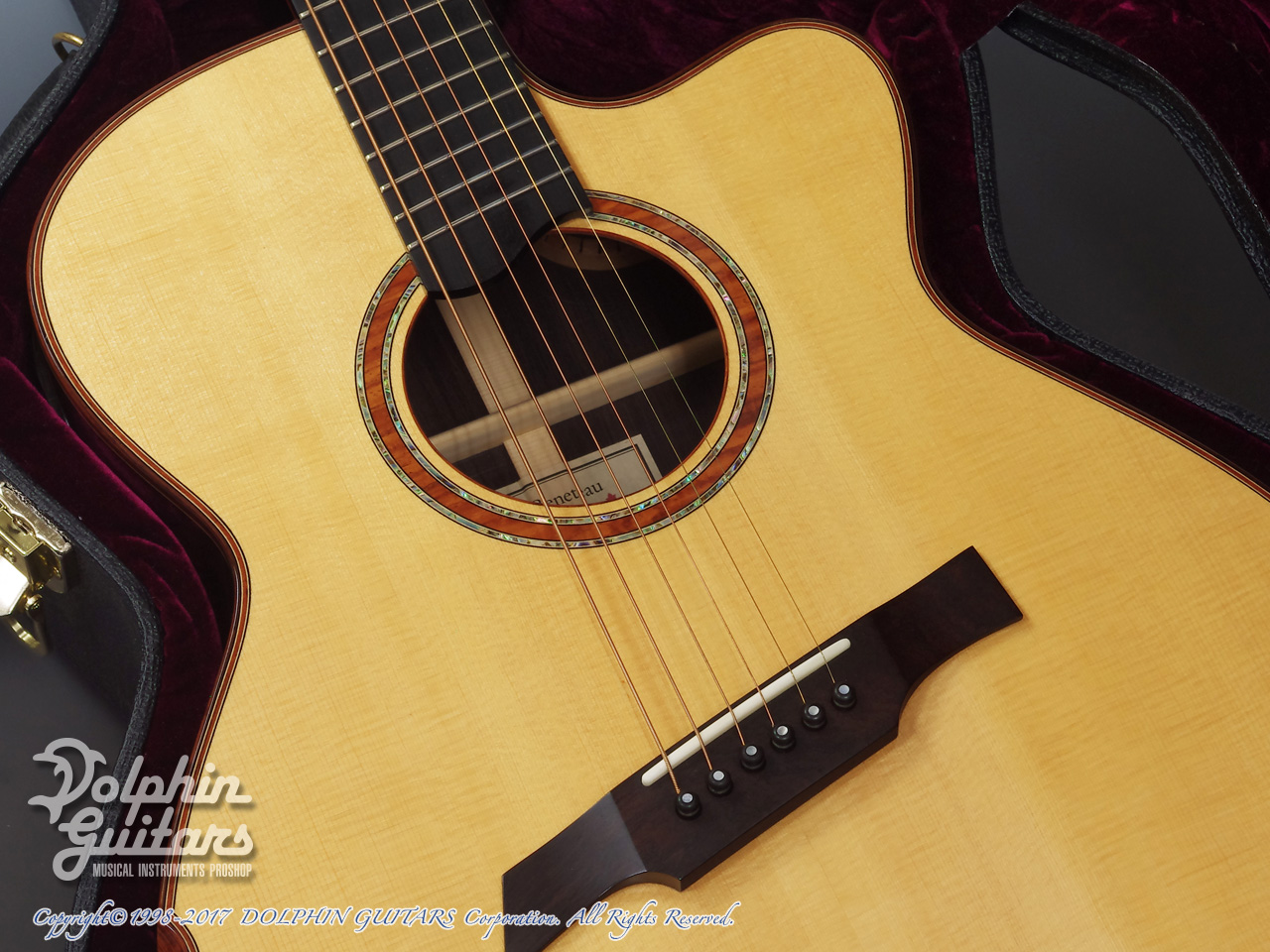 ルッツ・スプルーストップ、アフリカン・ブラックウッドS&B、エボニー指板&ブリッジ、ラスキンスタイル・アームレスト、ウッドバインディング、Gotoh510糸巻き、K&K Pure Mini (Contact PU)搭載。
