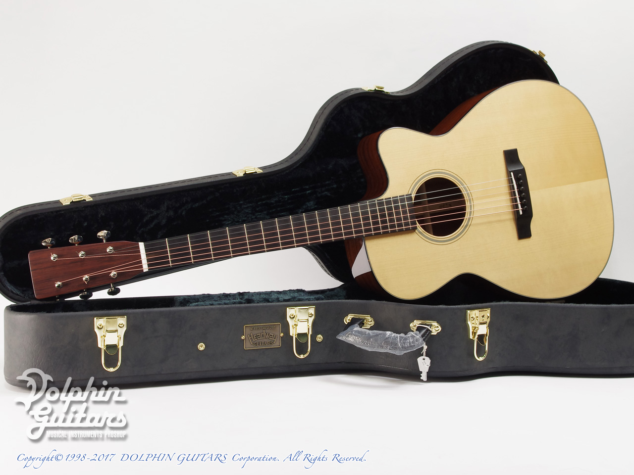 アディロンダック・スプルース・トップ、シンガポール・マホガニーサイド&バック、ホンデュラス・マホガニー1ピース・ネック、エボニー指板&ブリッジ、スキャロップドXブレーシング、ベネチアン・カッタウェイ、ラッカー・フィニッシュ、、ゴトー製オープンバック糸巻き。